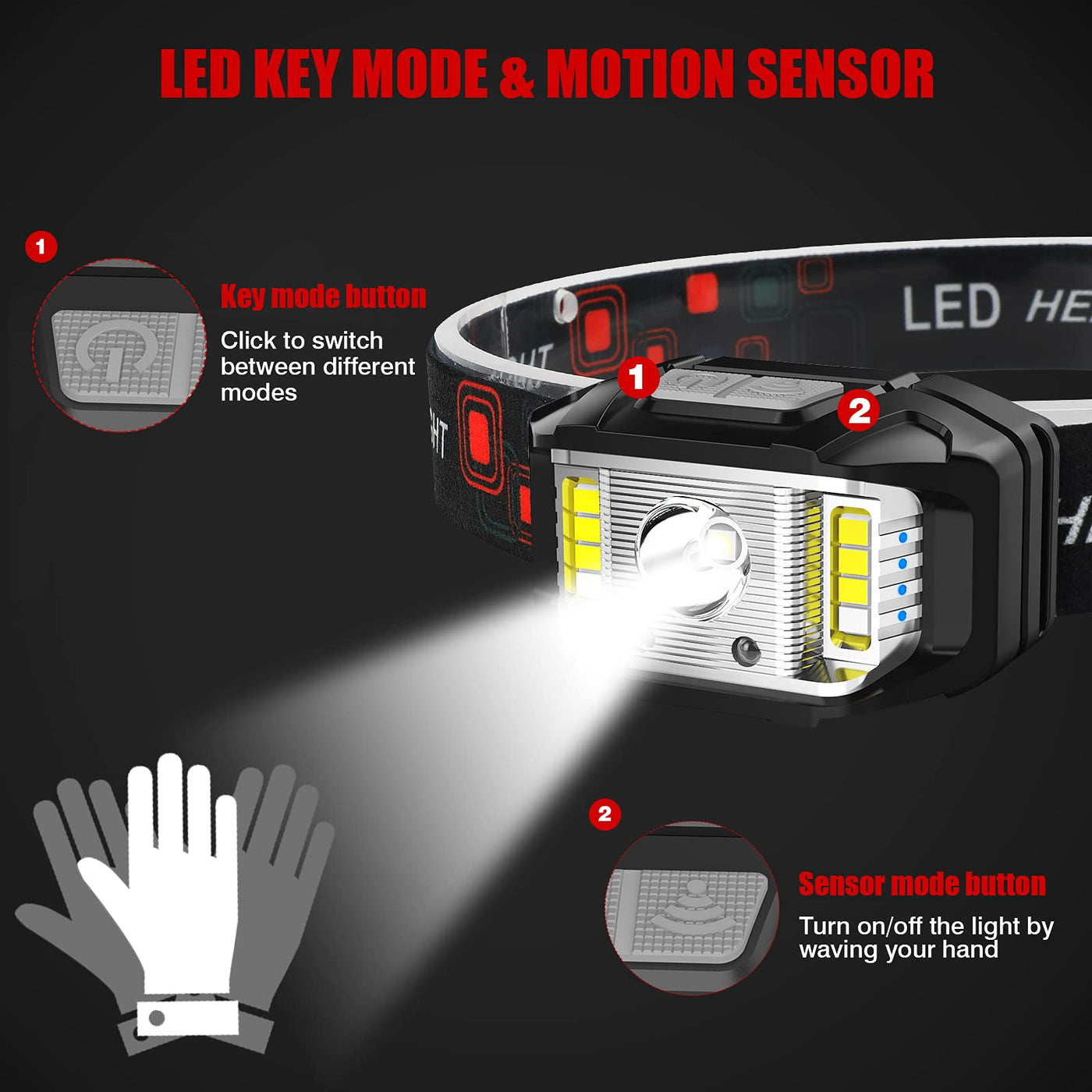 Q: How does the motion sensor function work on this headlamp?A: The motion sensor function allows you to turn the light on and off by simply waving your hand in front of the sensor, providing a hands-free and convenient experience, especially useful when your hands are busy.