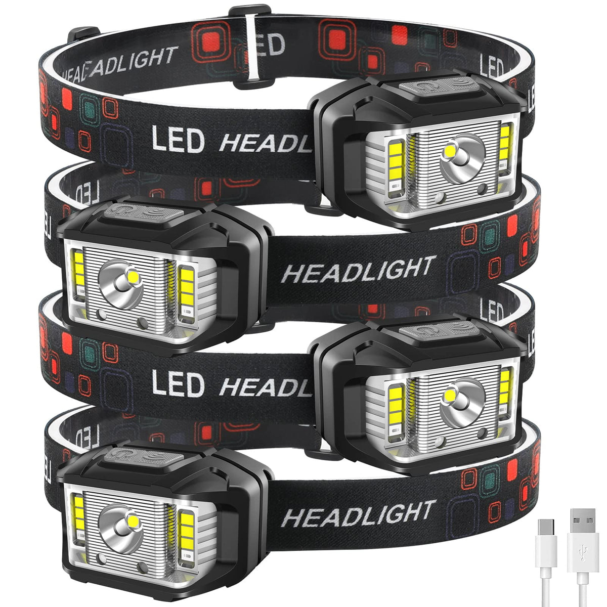 Jndfofc Headlamp Rechargeable, 1200 Lumen Super Bright Motion Sensor Led Head Lamp Flashlight, Waterproof Headlight With White Red Light,14 Modes Head Lights For Camping Fishing Running- 4 Pack