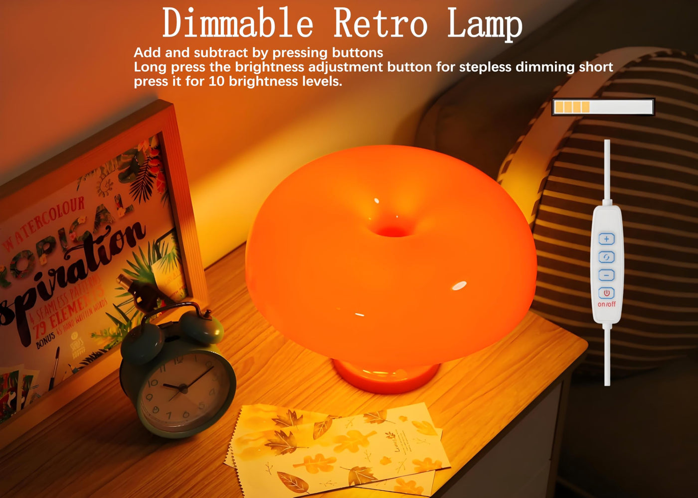 Joanajo Orange Mushroom Lamp Dimmable Mushroom Table Lamp With 3 Lighting Modes Plug Donut 70S Retro Mid Century Lamp For Room A