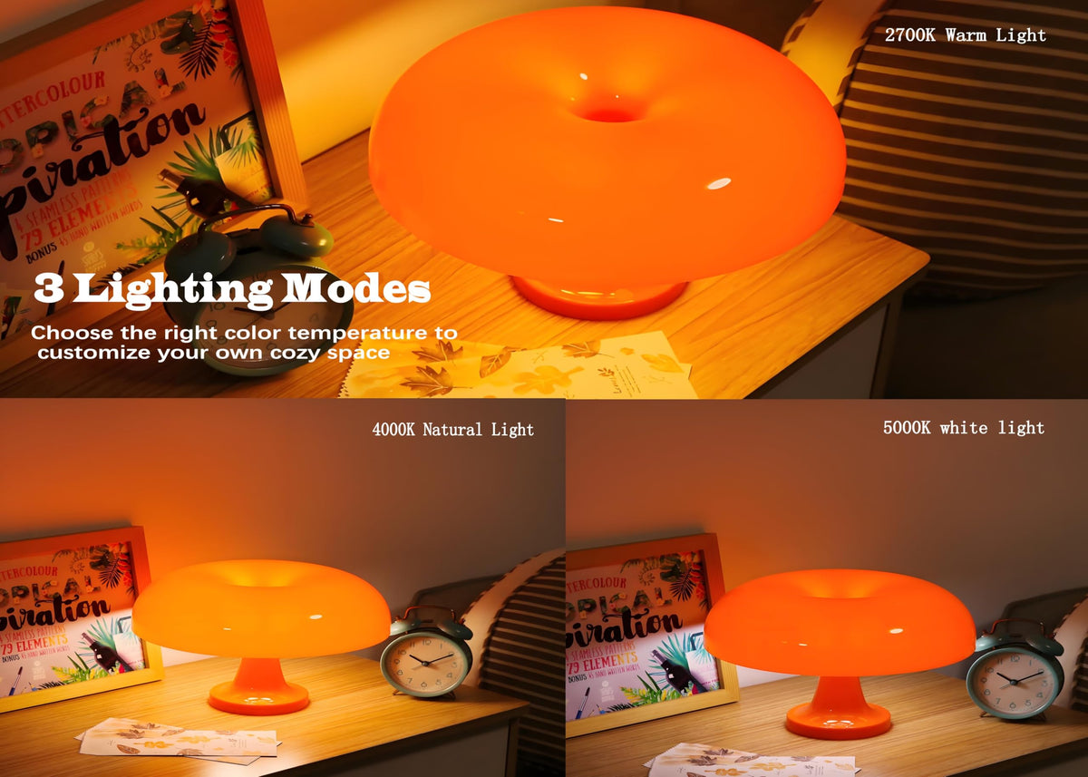 Decent Quality: -In Great Shape, The Cool Table Lamp Itself Is Well Constructed And With Excellent Built-In Led Bulbs Which Ensure A High Luminous Intensity, Energy Saving, Long Life, Environmental Protection, Etc. -The Material Is Environmentally Friendly Abs, Healthy And Durable, Only Need To Wipe The Towel For Cleaning. Bulbs Are Replaceable And Included: - We Know Youll Fall In Love With This Cozy Table Lamp And Use It Forever, Thats Why Weve Made Our Light Bulbs Replaceable And Included With Your Mushroom Lamp. - While Similar Mid Century Lamps Offer A One Time Use With Cheap Irreplaceable Bulbs Close To The Base Of The Lamp, Ours Will Last A Lifetime. Easily Swap With E14 Light Bulbs! Kick Back, Relax And Don'T Let Bright Fluorescent Lights Kill Your Vibe Any Longer - Offered In Retro Orange And A Clean White, This Mid Century Lamp Is The Perfect Vibe For A Chill Mid Century Modern Lamp Bedroom Lamp. Place It In The Corner To Warm Your Room With Its Glow Or Use It As A Desk Lamp Or Nightstand Lamp And Use Its Easy On/Off Clicker To Bring Light Into Your Day. 3 Lighting Modes: - Mushroom Lamps For Bedrooms Offer 3 Colors Of White Light To Choose From Depending On Where Or How You'Re Using It. It Provides 5000K White Light, 4000K Natural Light, And 2700K Warm Light To Improve The Room'S Atmosphere And Create A Comfortable Living Space.