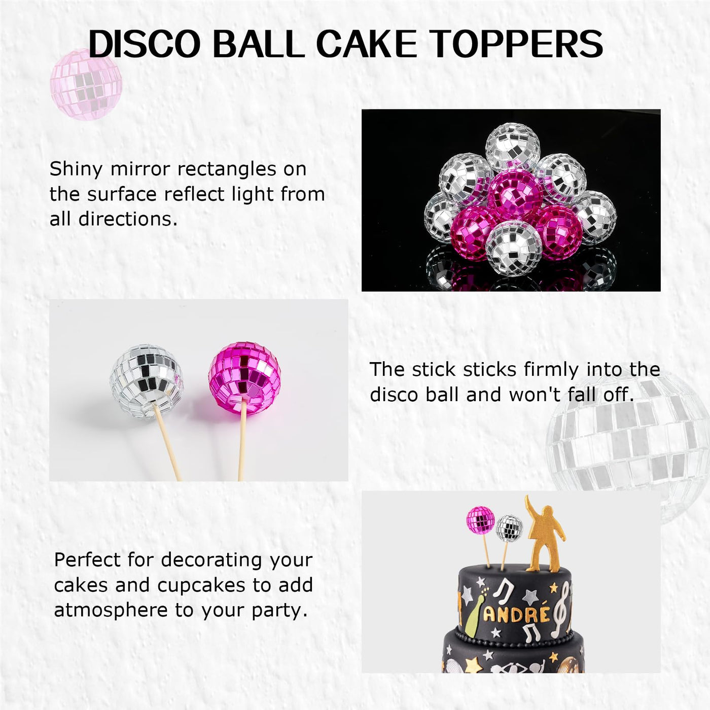 Disco Theme Party Supplies: Comes with 12 pink and 12 silver disco ball cake toppers.