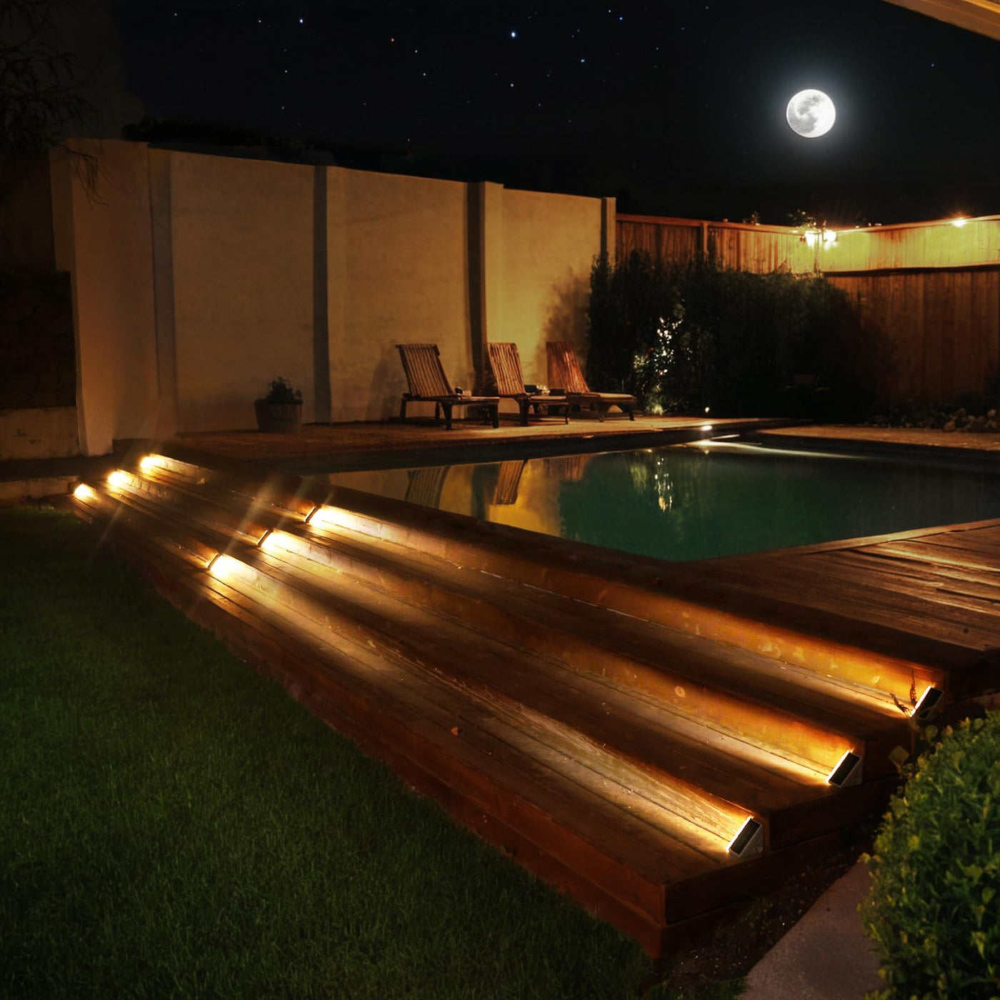 - **Solar-Powered Convenience**: Equipped with a smart switch, these lights automatically charge and turn on at dusk, ensuring your steps are always illuminated without the hassle of wiring or external power sources.