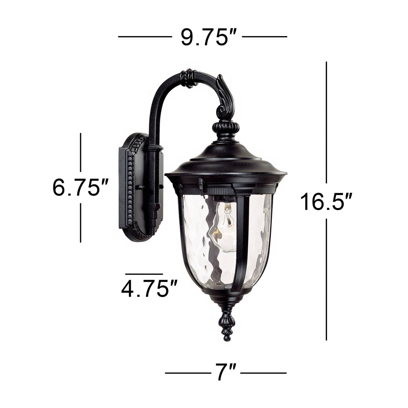 John Timberland Bellagio Outdoor Wall Light, Black Aluminum, 16.5" With Clear Glass Decor