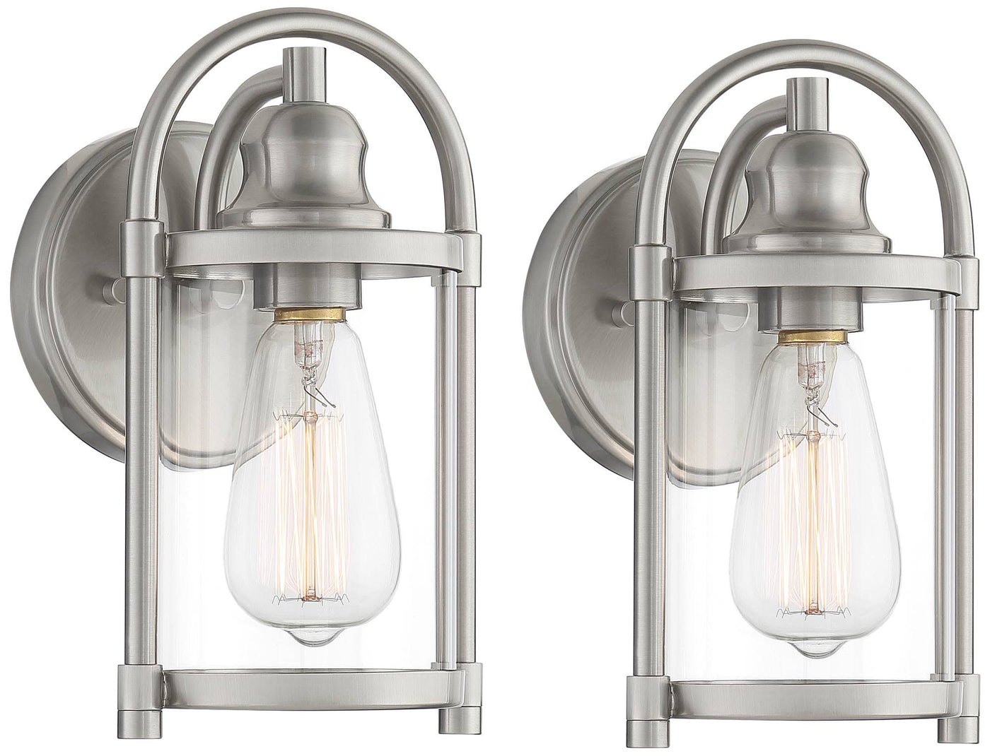 John Timberland Rustic Farmhouse Outdoor Wall Light Fixtures Set Of 2, Brushed Nickel, Clear Glass