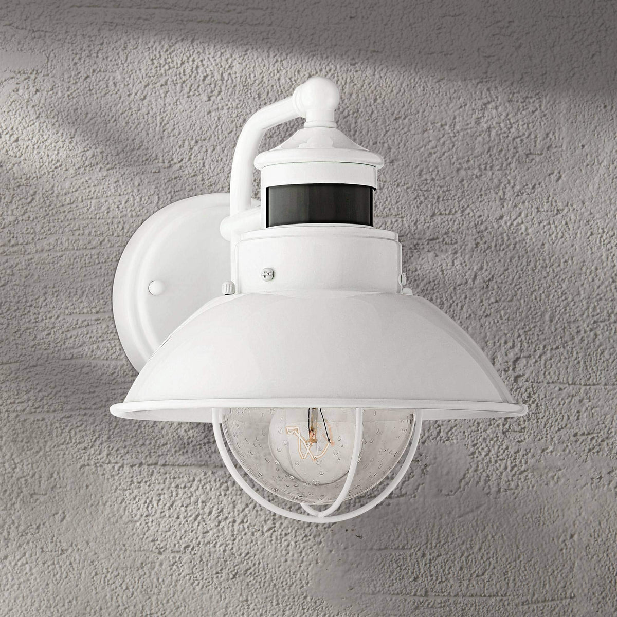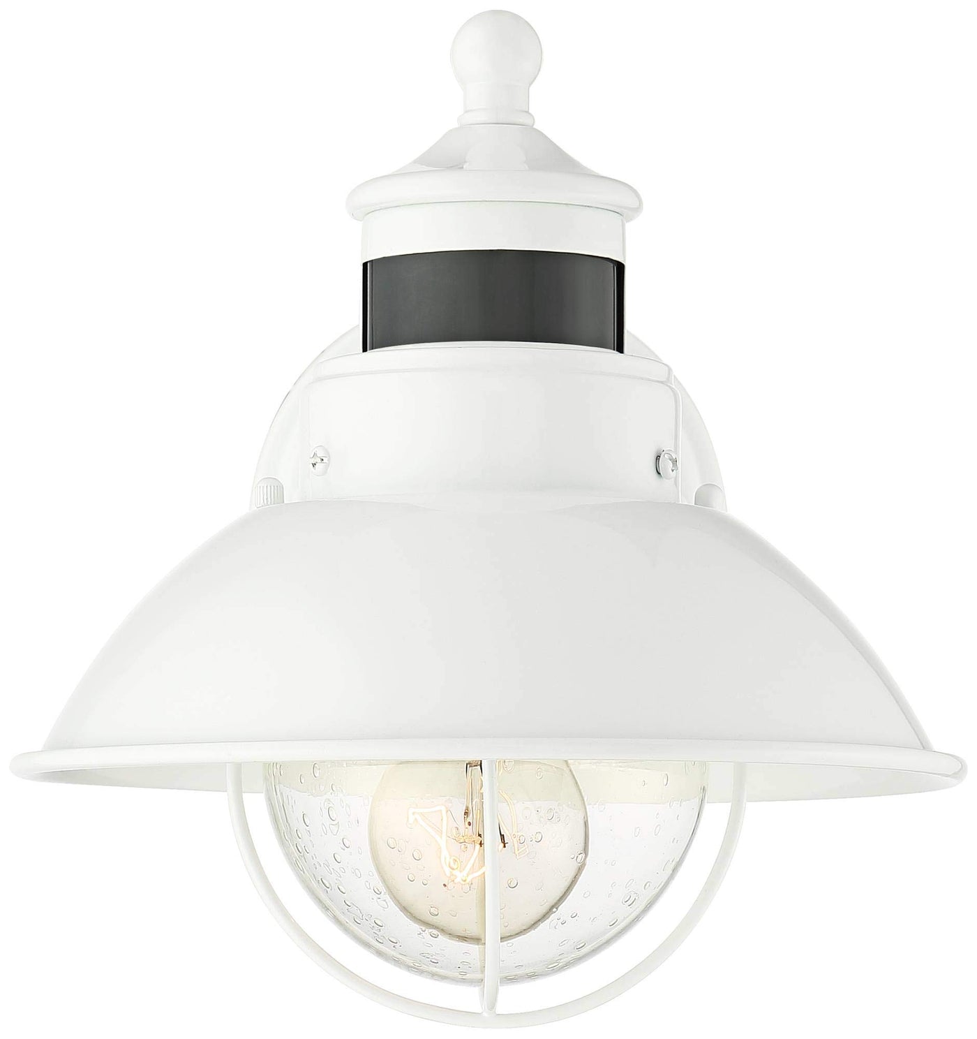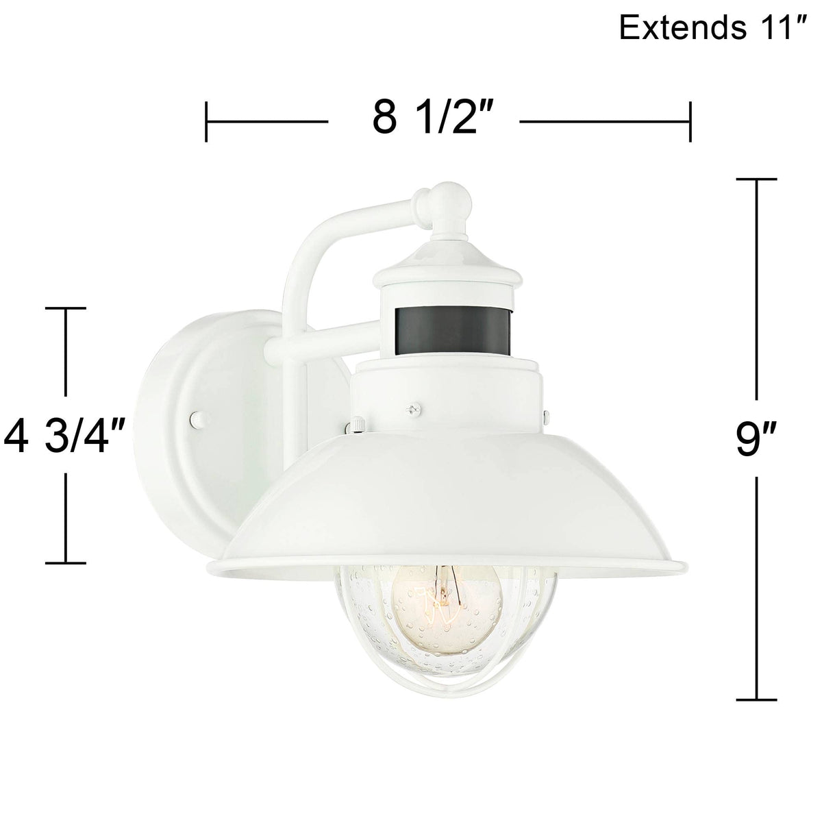 John Timberland Rustic Industrial Barn Light Fixture, White, 9" Clear Seedy Glass, Motion Sensor