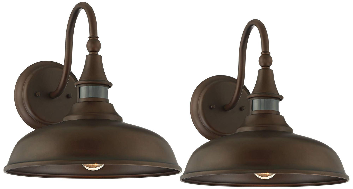 John Timberland Rustic Industrial Outdoor Barn Light Set - Bronze, Motion Sensor, Dusk To Dawn