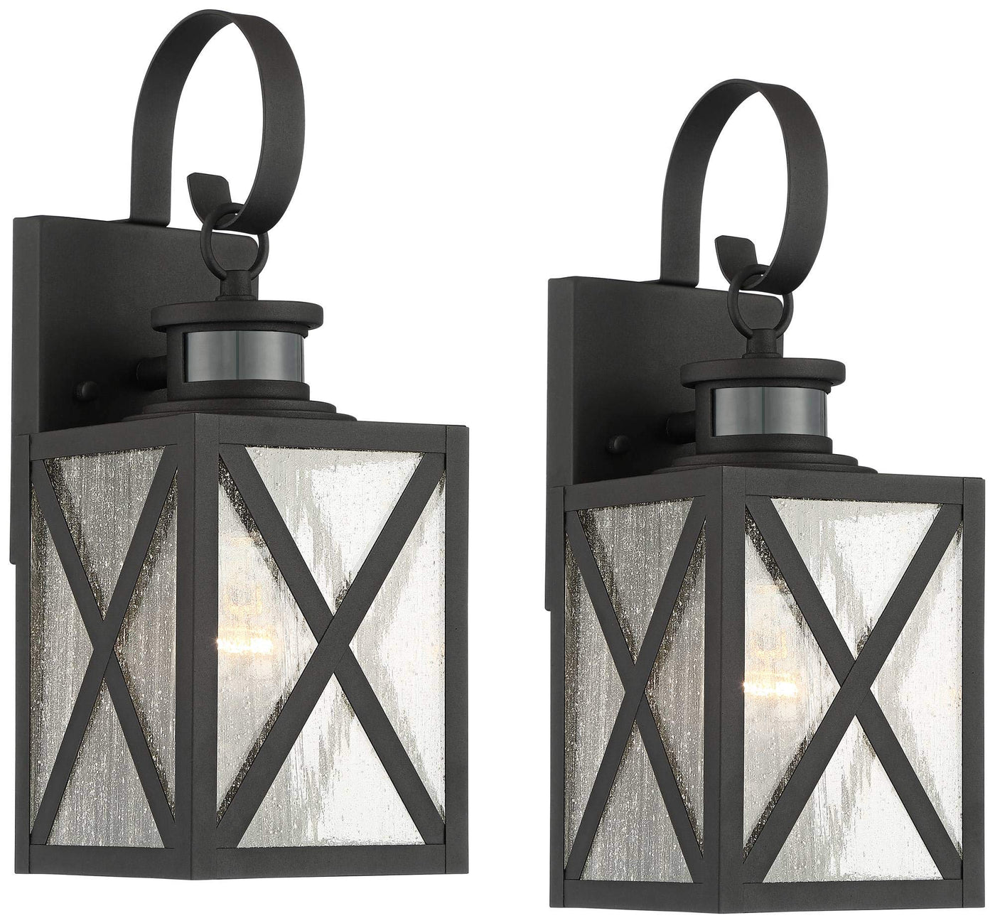 John Timberland Vintage Outdoor Wall Light Set Of 2, Black Carriage Style, Motion Sensor