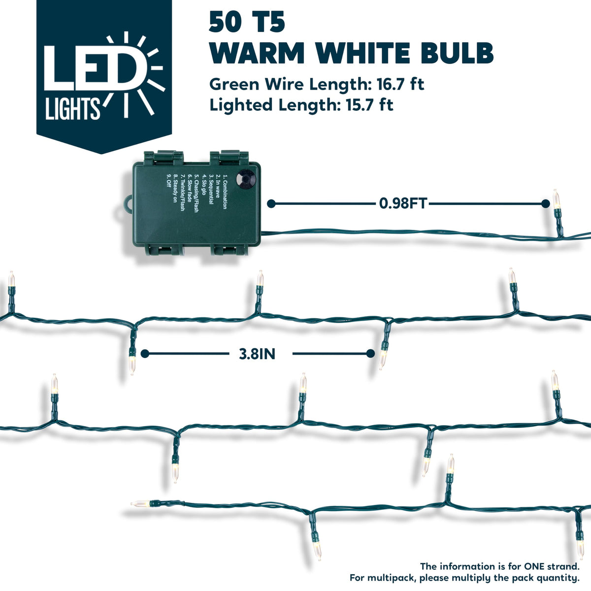 Joiedomi Led Christmas Lights Outdoor,31.4Ft Battery Operated Christmas Light With 8 Modes,2×50 Warm White Xmas Tree Lights Indoor,Multifunction Green Wire String Lights For Christmas Decor Party