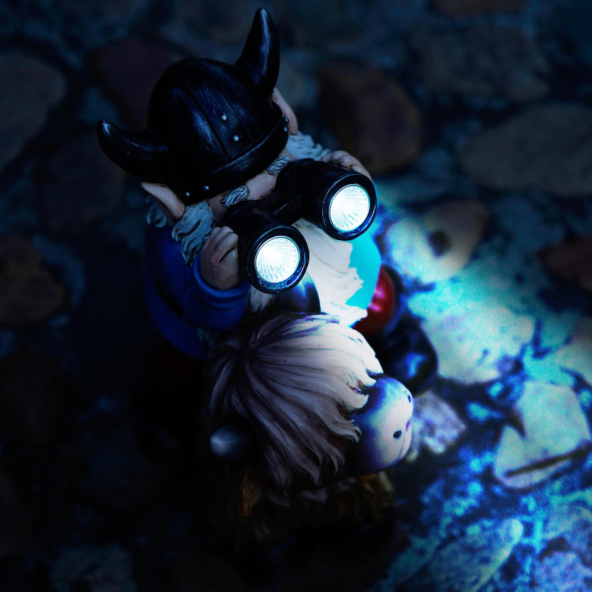 Joint Honglin Garden Gnome Statues Resin Gnome Sitting On Highland Cow Solar Lights Outdoor Telescope Gnome Gifts For Yard, Pati