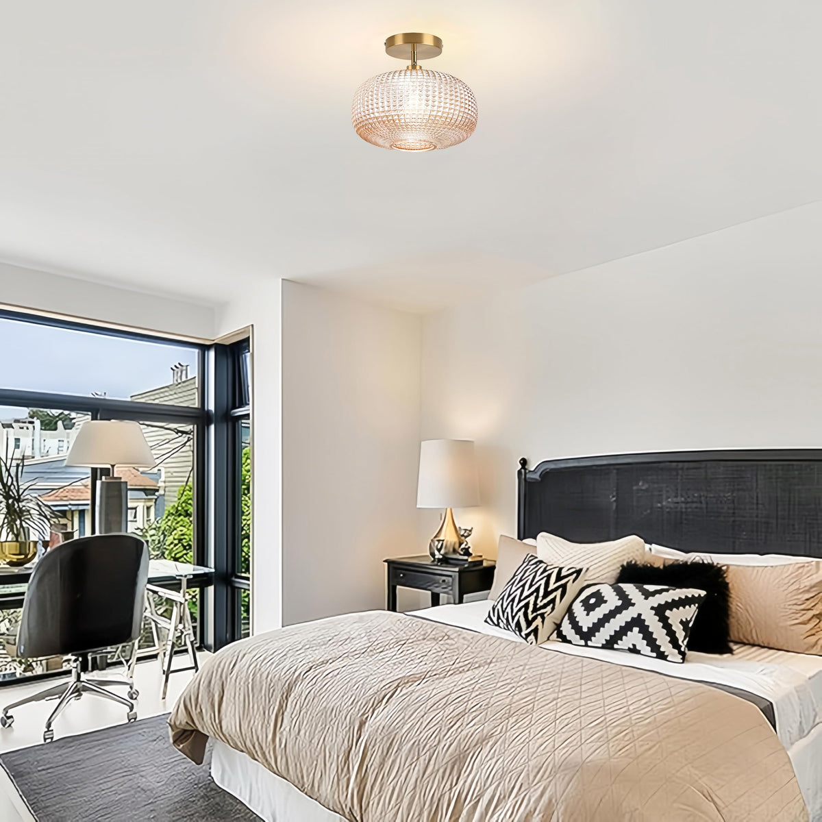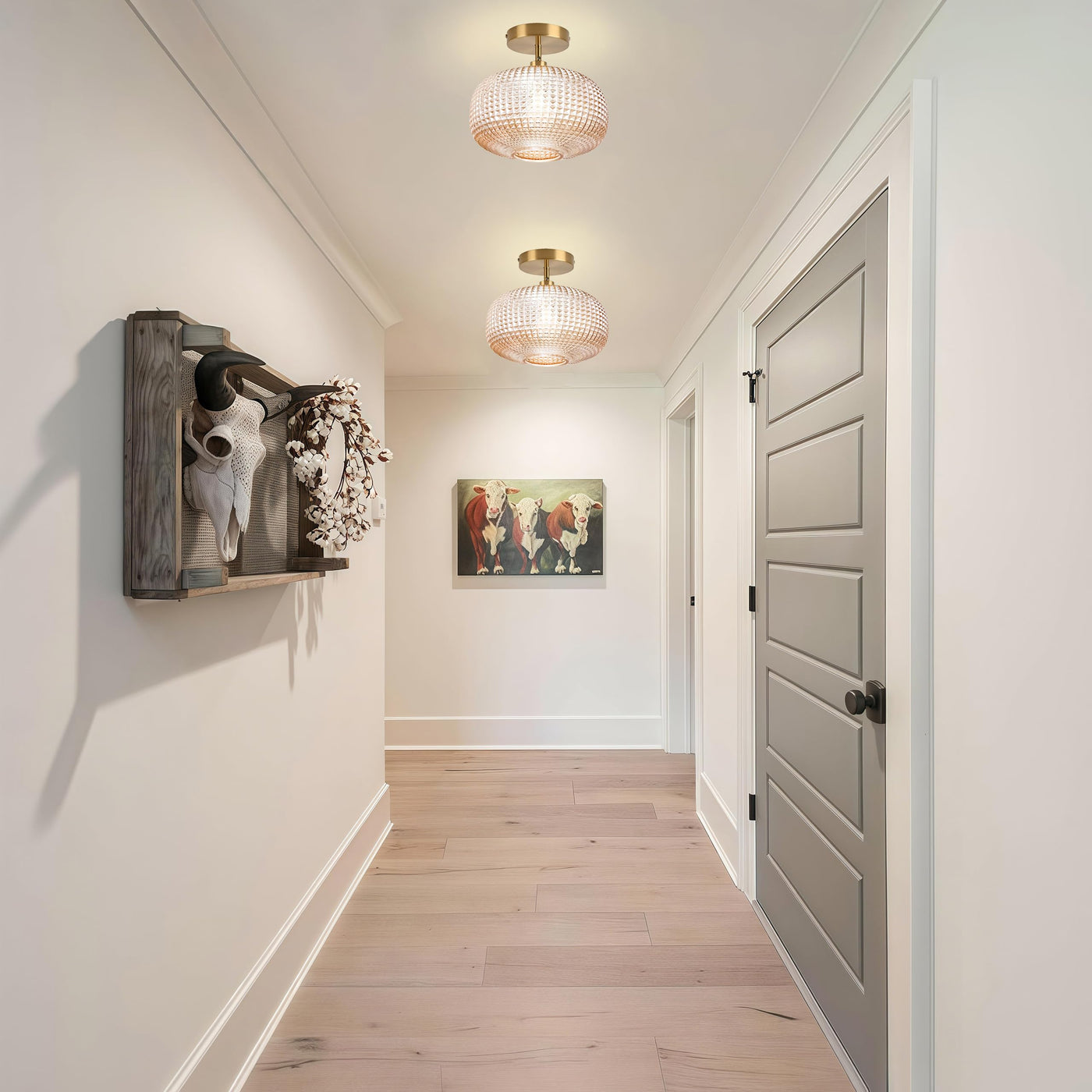 Jolydoly Semi Flush Mount Ceiling Light Vintage Small Ceiling Light Fixture Hallway Lighting Fixture With Amber Glass Shade Art Deco Kitchen Lighting Fixtures Ceiling For Bedroom Bathroom Porch
