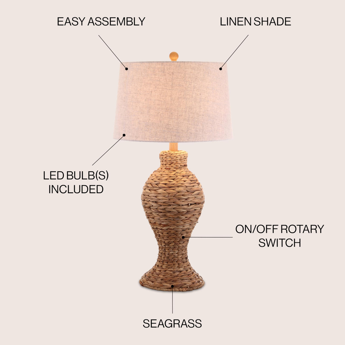 Jonathan Y Jyl1015A Elicia 31'' Seagrass Weave Led Table Lamp Coastal Cottage Bedside Desk Nightstand Lamp For Bedroom Living Ro