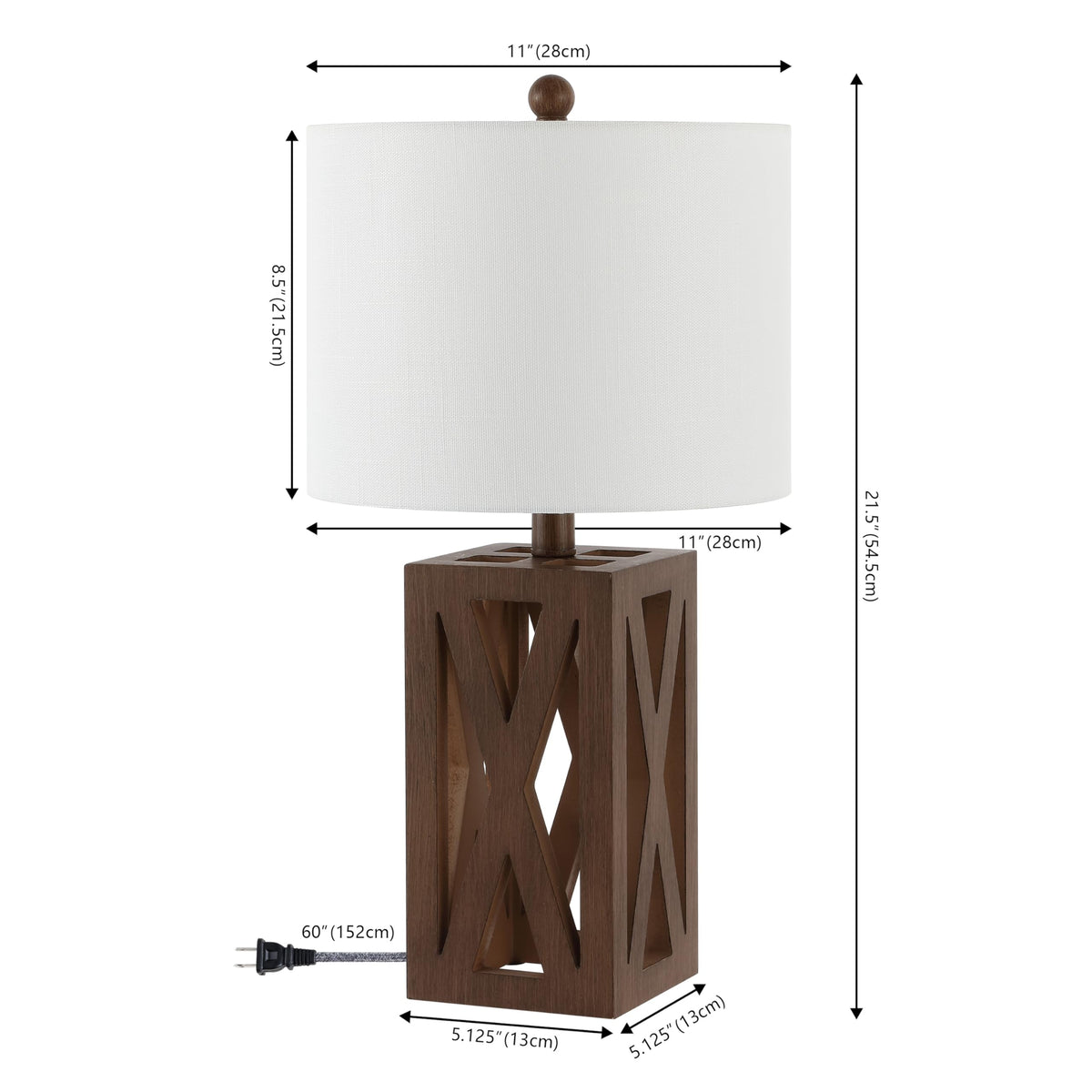 This Gorgeous Wooden Lamp Has An Earthy Texture And A Geometric Open Structure That Would Easily Blend With Traditional, Rustic, Or Contemporary D Cor. Designers Love The Silk-Wrapped Cord, Linen Drum Shade, And Classically Finished Finial. At 21.5'' High, It Would Sit Perfectly Atop A Desk, Armoire, Or Side Table.