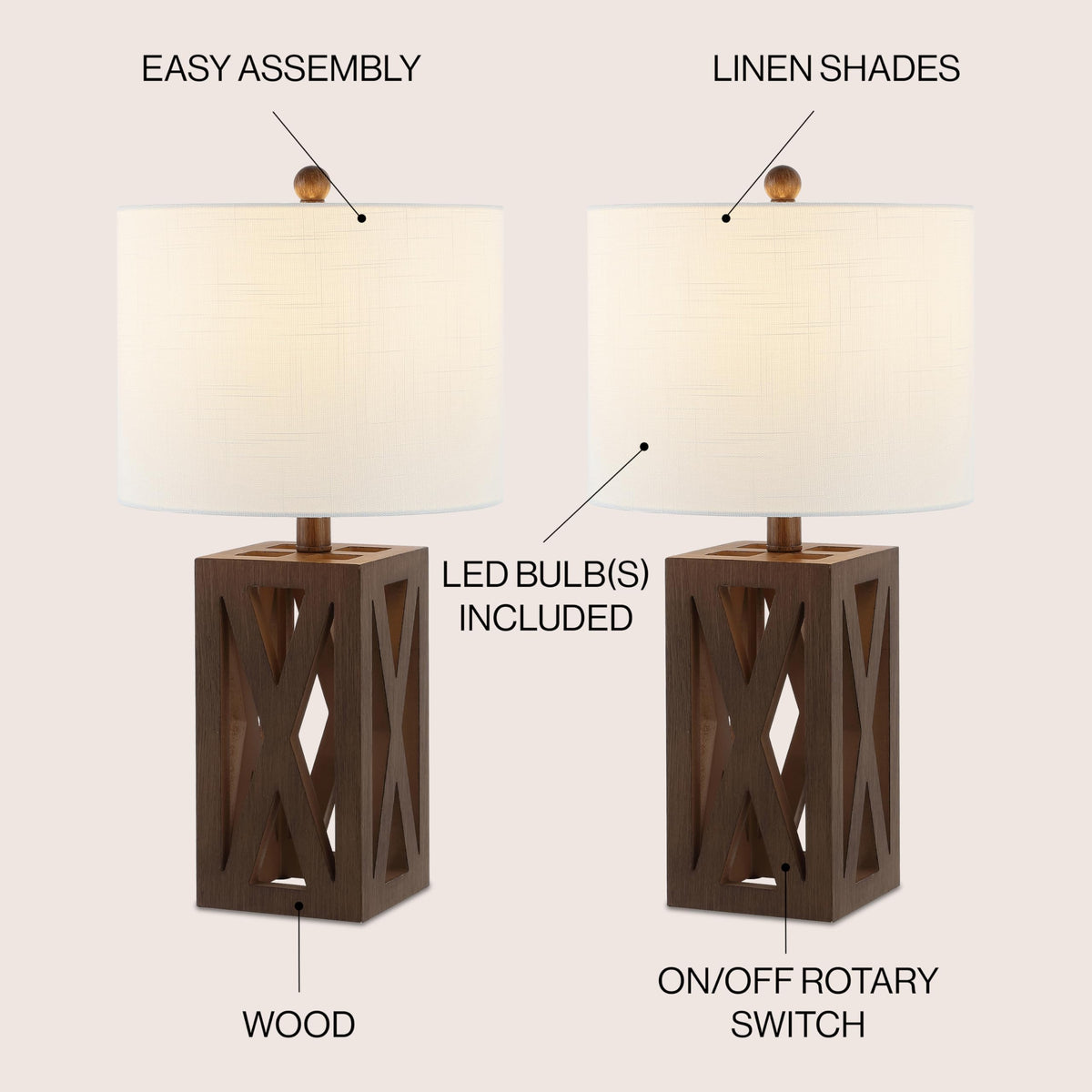 Jonathan Y Jyl1062A-Set2 Stewart 21.5'' Wood Led Table Lamp Farmhouse, French Country, Rustic, Bohemian, Bedroom, Living Room, O