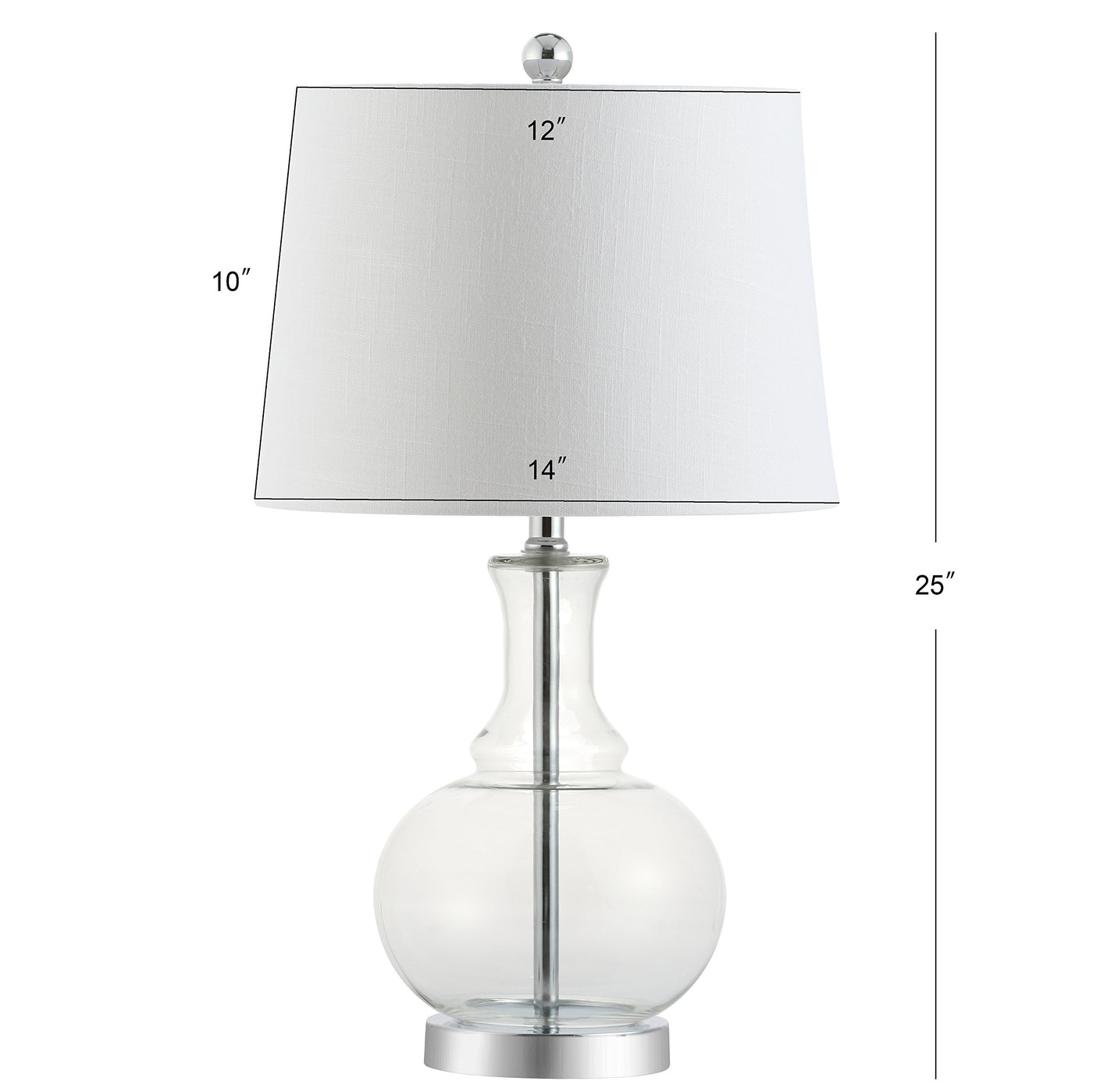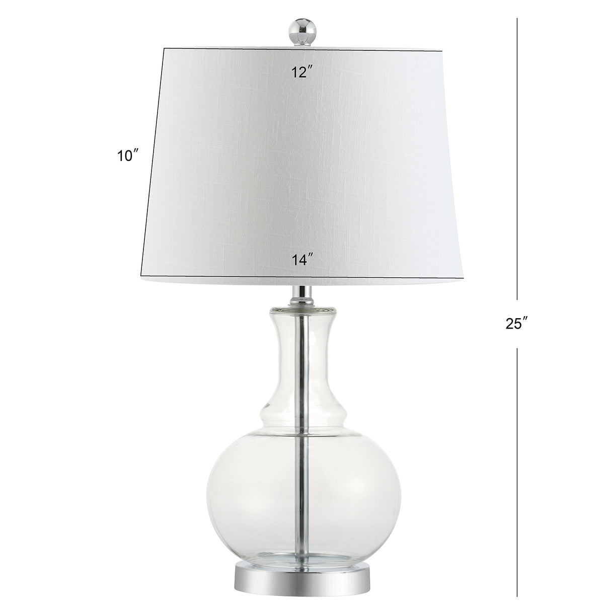 Classic Curves Accentuate Hand-Blown Glass In This Perfect Combination Of Classic And Contemporary. In An Eye-Catching Clear Glass And Chrome Base, Rod, And Finial, No Design Detail Was Overlooked. Softened With A White Linen Drum Shade And Finished With A Silk-Wrapped Cord, The Style Extends All The Way To The Plug.