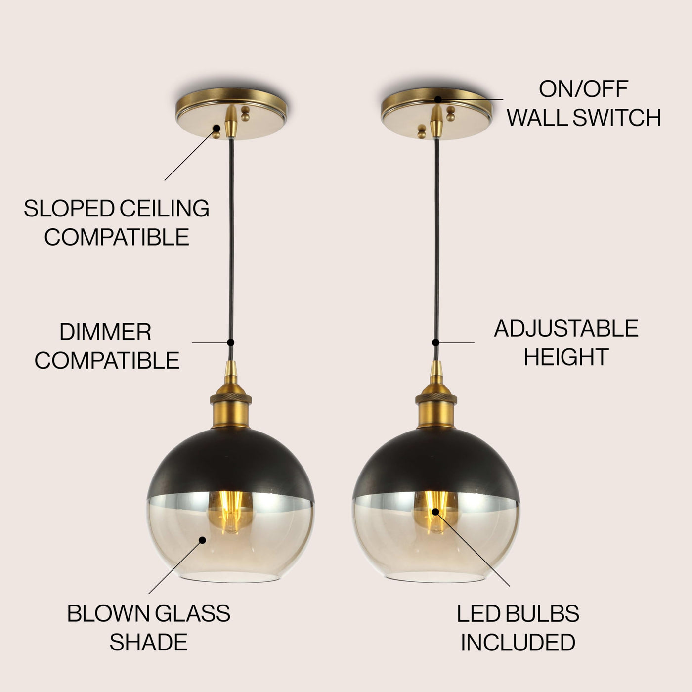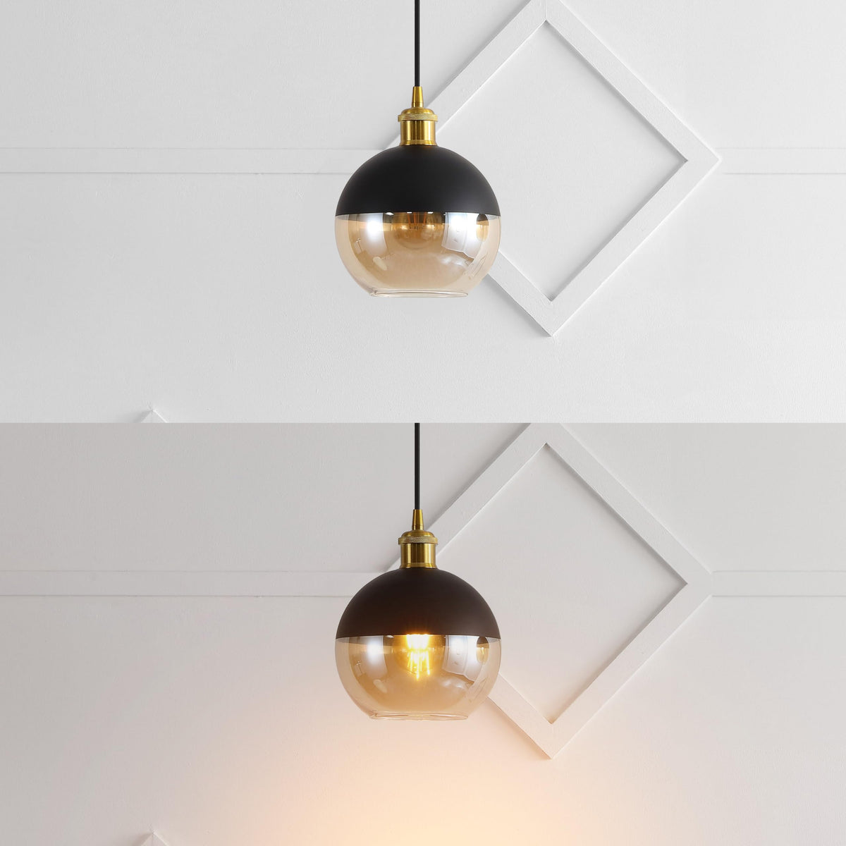Jonathan Y Jyl3513A-Set2 Nixon 7.5'' 1-Light Mid-Century Modern Metal/Glass Adjustable Drop Globe Led Pendants, For Bedroom, Liv