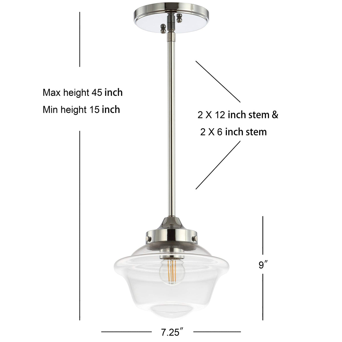 Jonathan Y Jyl3516B Kurtz 7.25'' Adjustable Drop Metal/Glass Led Pendant Contemporary Transitional Dimmable Dining Room Living R