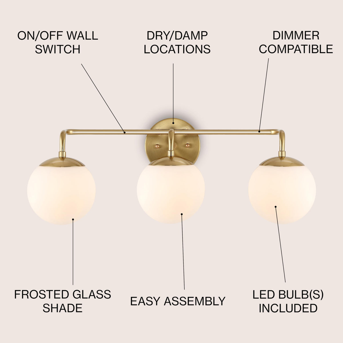Jonathan Y Jyl3536A Louis Parisian Globe 25'' 3-Light Metal/Frosted Glass Modern Contemporary Led Vanity Midcentury Glam 2700K L