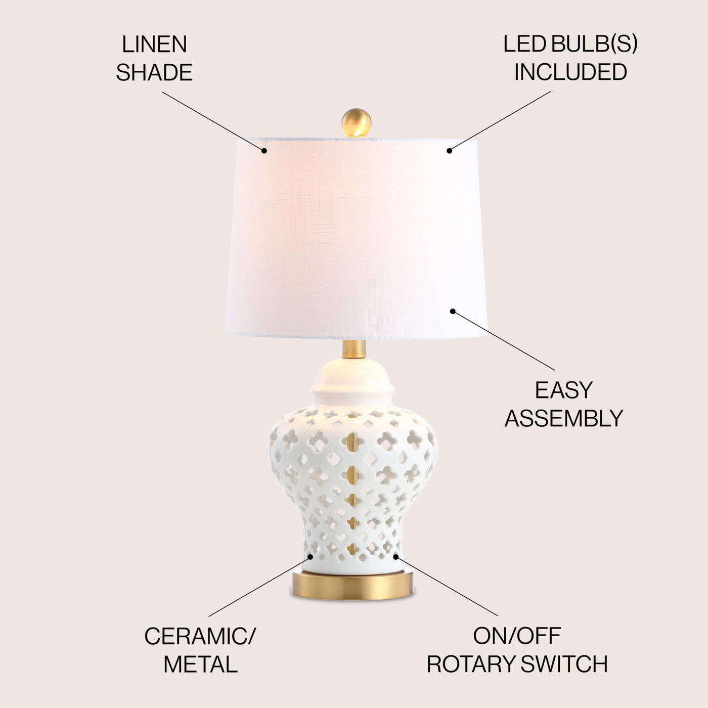 Jonathan Y Jyl6210A Quatrefoil Fretwork 20.5'' Pierced Ginger Jar Ceramic/Metal Led Table Lamp Glam Bedside Desk Nightstand Bedr