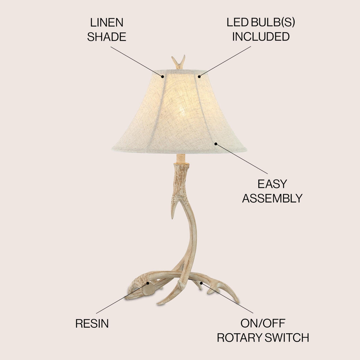 Create A Classic Lodge Feel In Your Home With This Rustic Table Lamp. Featuring A Faux Antler Base, This Nature-Inspired Lamp Is Beautifully Rugged And Artistic. The Natural Linen Drum Shade Diffuses The Light For A Soft, Warm Cabin Glow.
