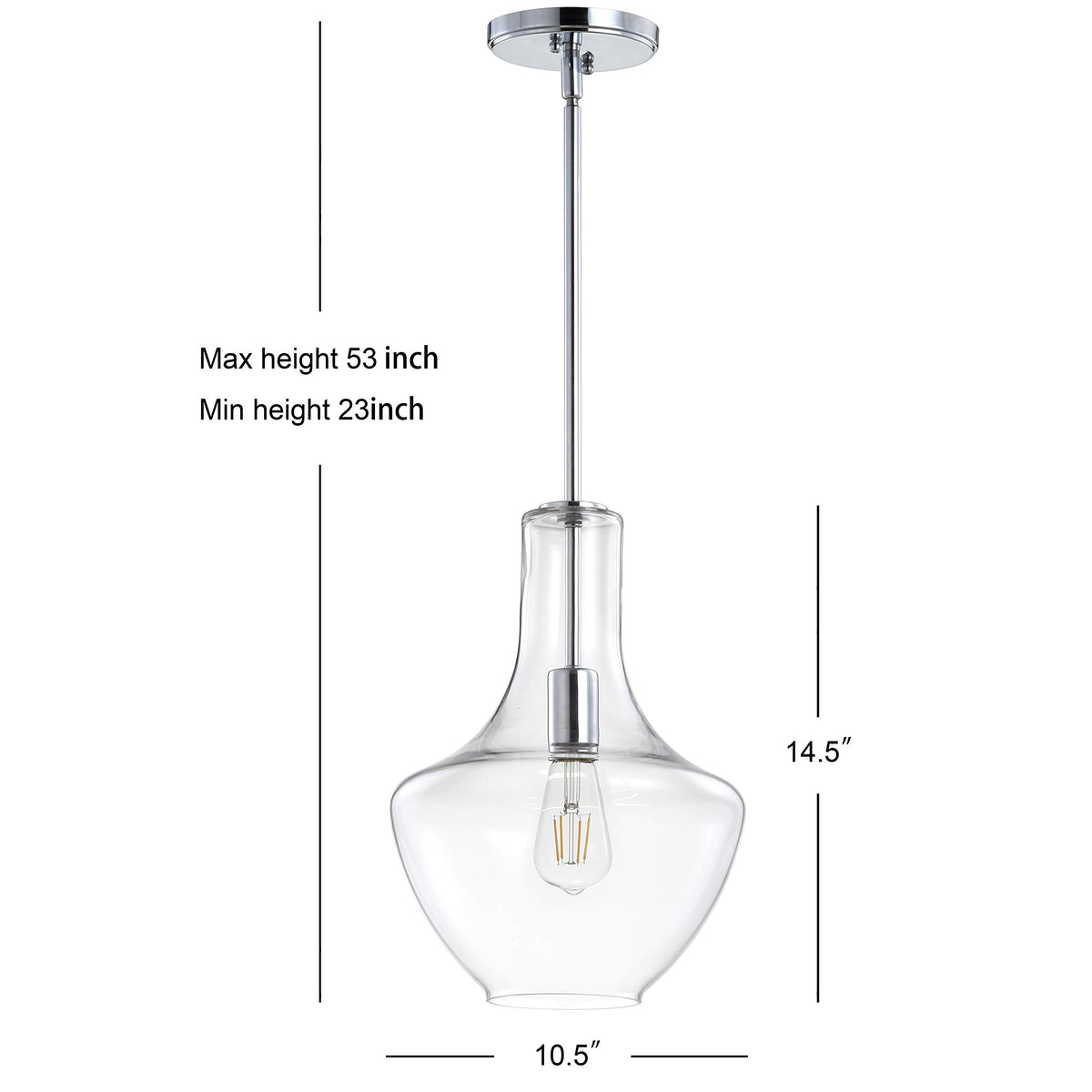 Q: Is the hanging length of this pendant adjustable?A: Yes, the drop on the JONATHAN Y JYL6400A pendant can be adjusted to your desired length, allowing for a semi-custom look that suits your space.