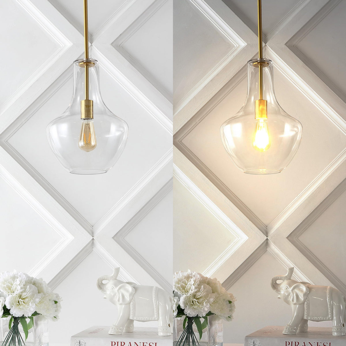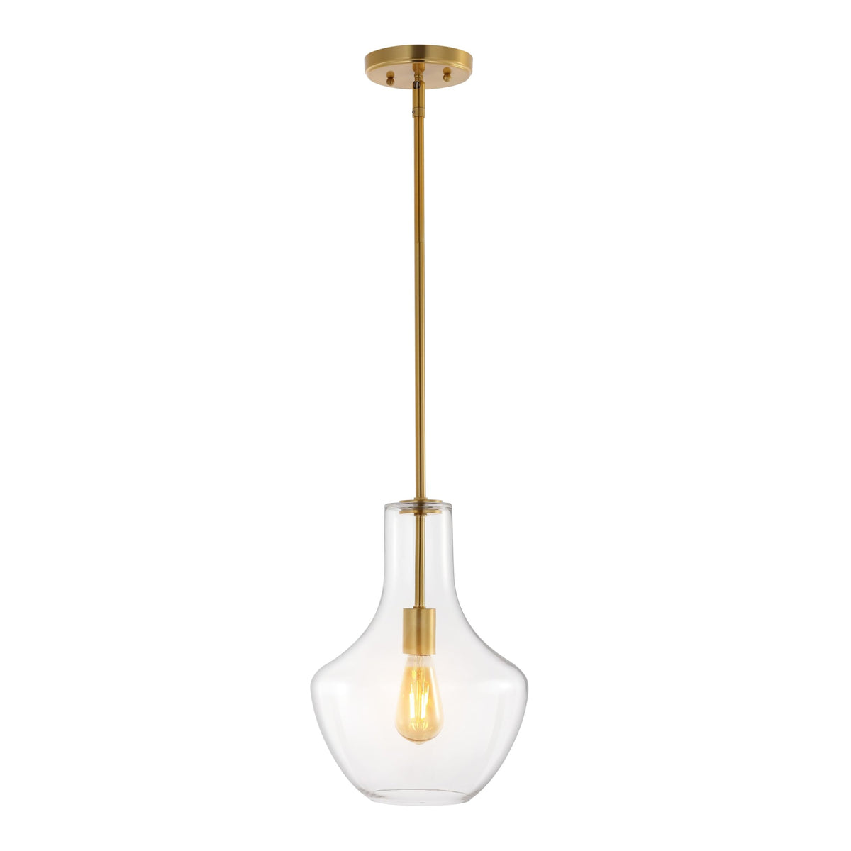 Q: What materials are used in the construction of the pendant light?A: The JONATHAN Y JYL6400C pendant features a glass shade and a brass rod frame, combining elegance with modern design.