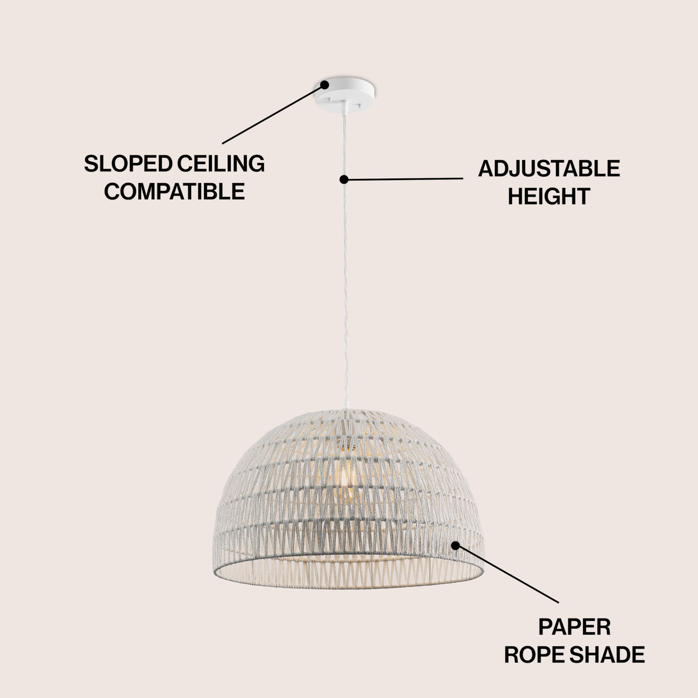 Modern Design Meets Traditional Craftsmanship In Our Woven Dome Pendant. Made From Either Paper Or Rope Wicker Handwoven Onto A Sturdy Metal Frame, This Ceiling Fixture Brings A Bohemian Touch To Your Living Room, Bedroom, Or Dining Room. Designed With An Adjustable Drop To Accommodate Ceilings Of Various Heights, It Combines Artisanal Texture With Versatile Functionality.