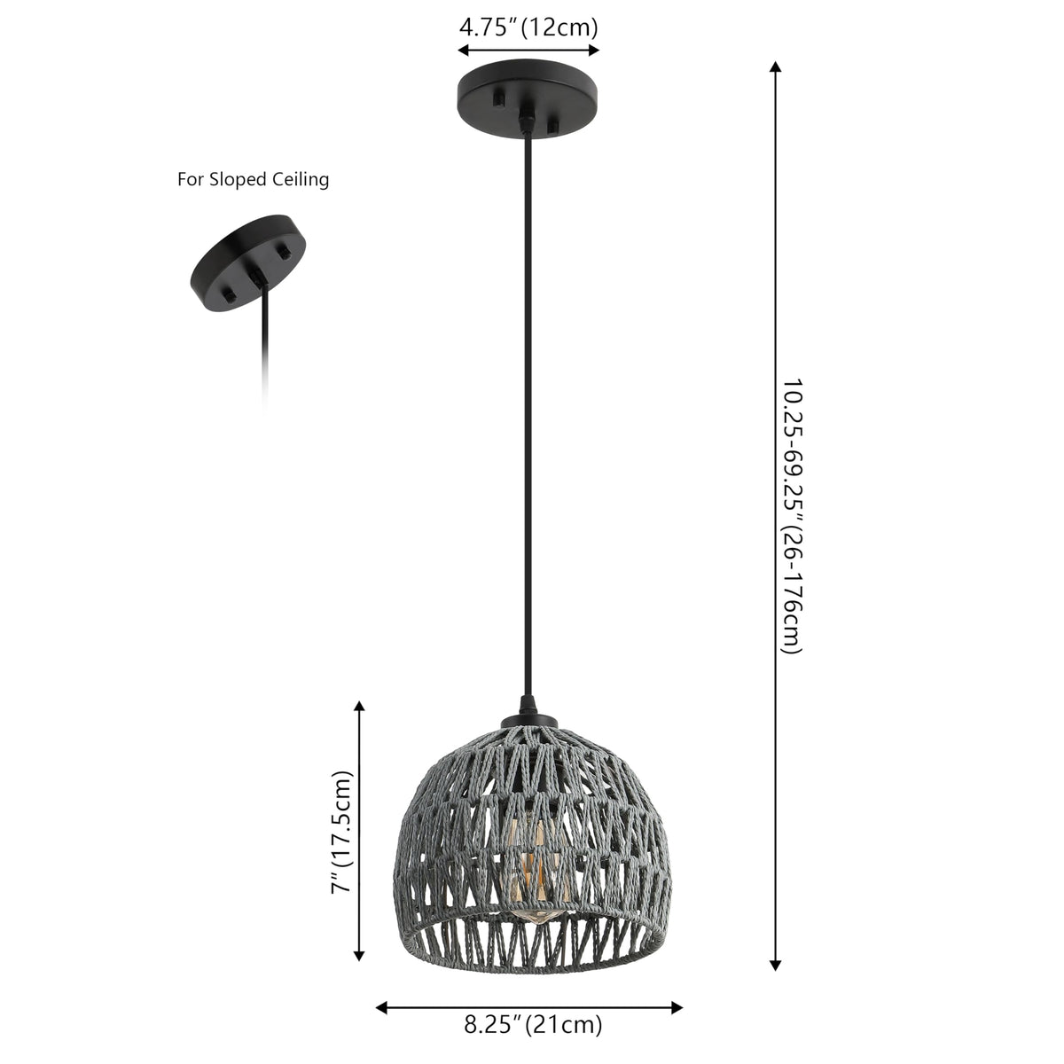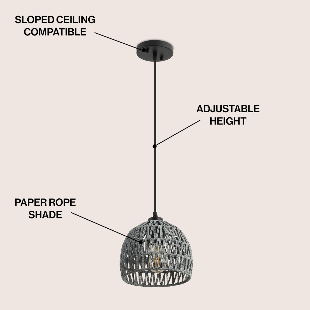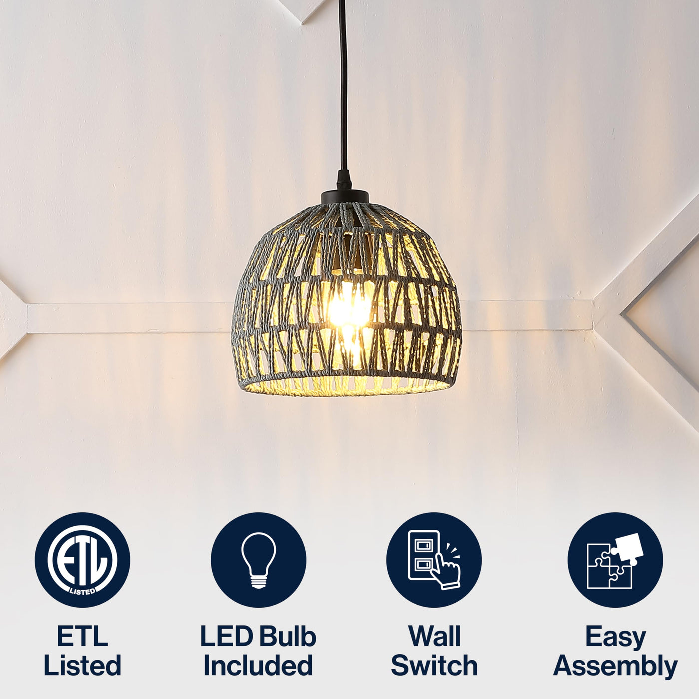 Jonathan Y Jyl6512D Campana 8.25 1-Light Bohemian Modern Woven Rope/Iron Led Pendant Farmhouse, Coastal, Transitional, Kitchen,