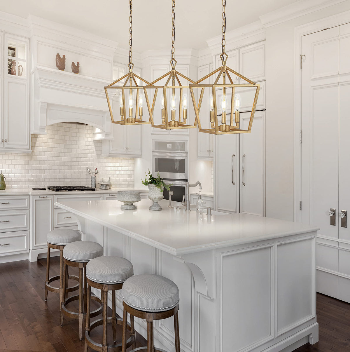 Perfectly Sized For A Kitchen Island, Small Dining Table, Entry Or Hallway, The Traditional Silhouette Of Our Pendant Lantern Is Updated With A Bright Gold Finish. The Open Frame Contains Three Candles With Led Bulbs That Provide Warm Light For A Vintage Touch. With Its Adjustable Chain, This Versatile Lantern Is Ideal For A Modern Farmhouse Kitchen, Rustic Entry, Or Traditional Foyer.
