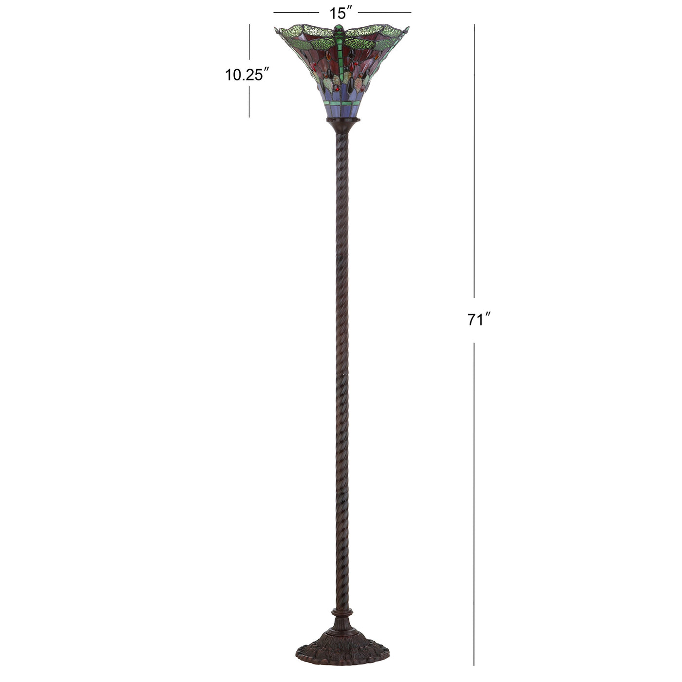 Jonathan Y Jyl8002B Dragonfly Tiffany-Style 71'' Torchiere Floor Lamp, Tiffany, Traditional, Art Nouveau Style, Elegant, Office,