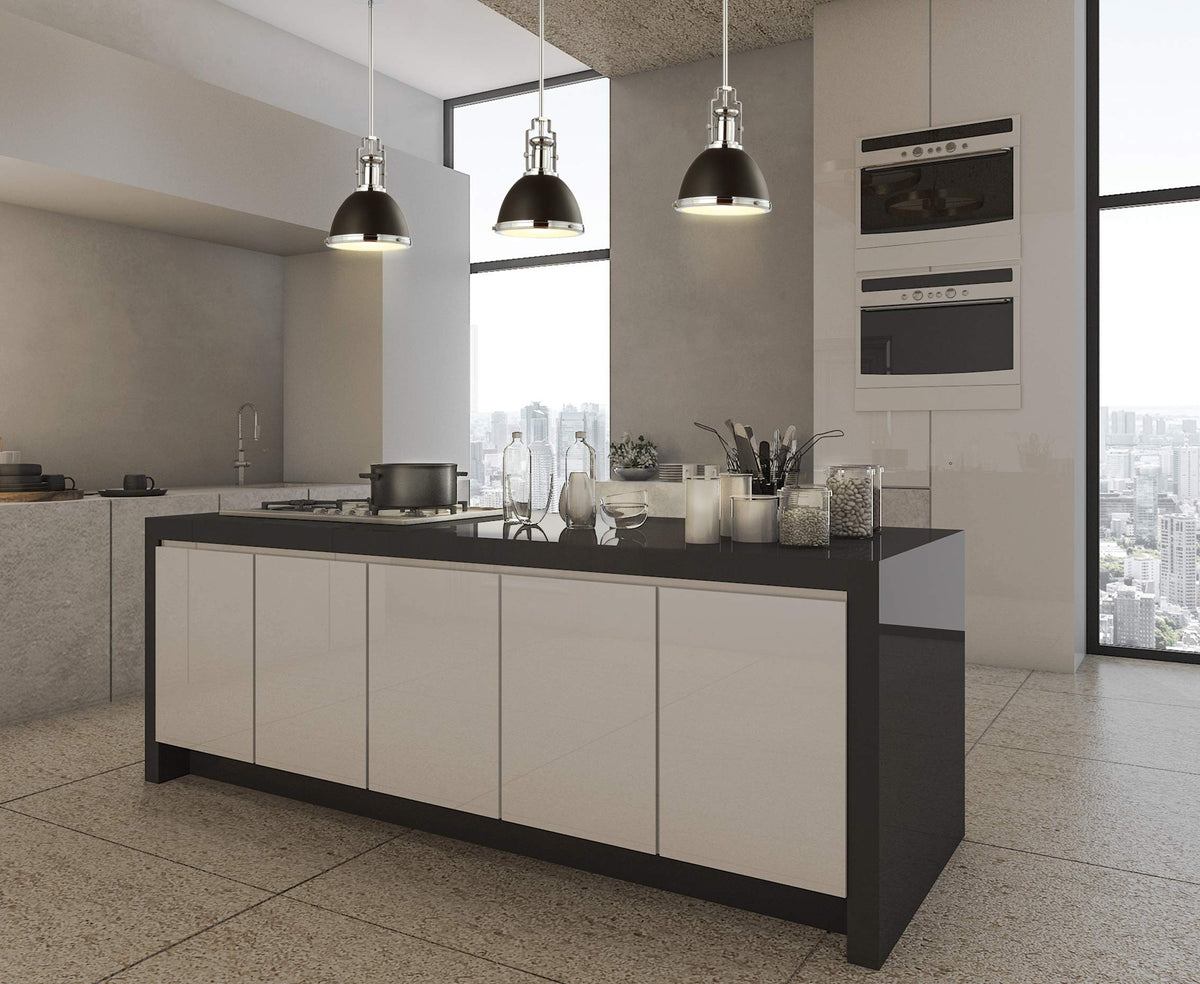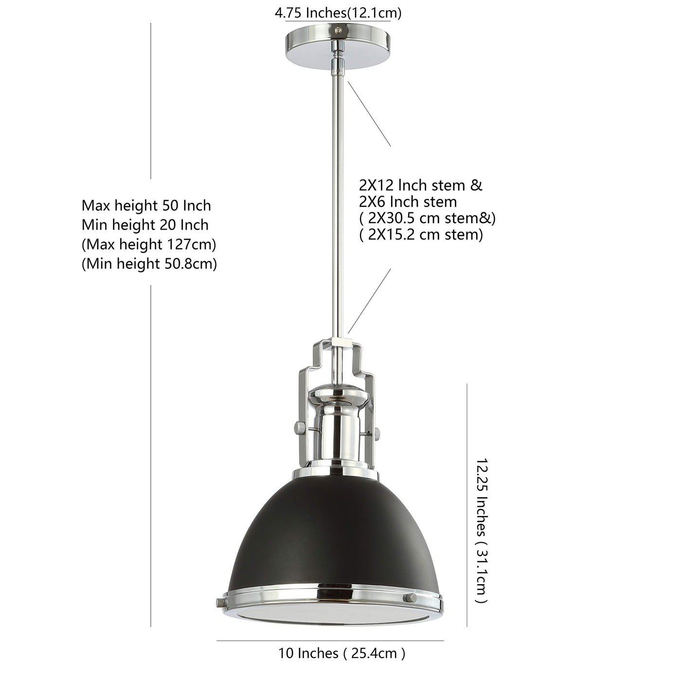 With Its Vintage Detailing And Classic Good Looks, This Large Kitchen Pendant Light Adds An Upscale Touch To Any Traditional Interior. The Chrome Finish Is Combined With A Black Metal Hood For A Crisp Style Contrast. The Single Led Bulb Provides Plenty Of Bright Light, Softened By A Diffuser Panel.