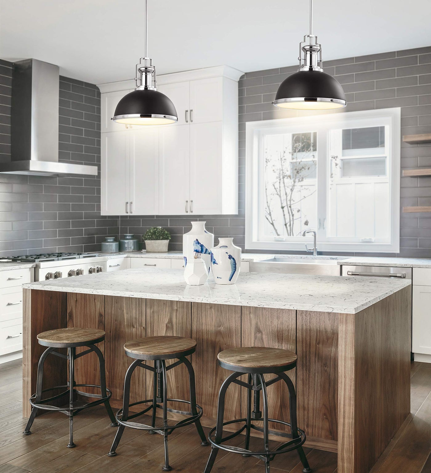 With Its Vintage Detailing And Classic Good Looks, This Large Kitchen Pendant Light Adds An Upscale Touch To Any Traditional Interior. The Chrome Finish Is Combined With A Black Metal Hood For A Crisp Style Contrast. The Single Led Bulb Provides Plenty Of Bright Light, Softened By A Diffuser Panel.