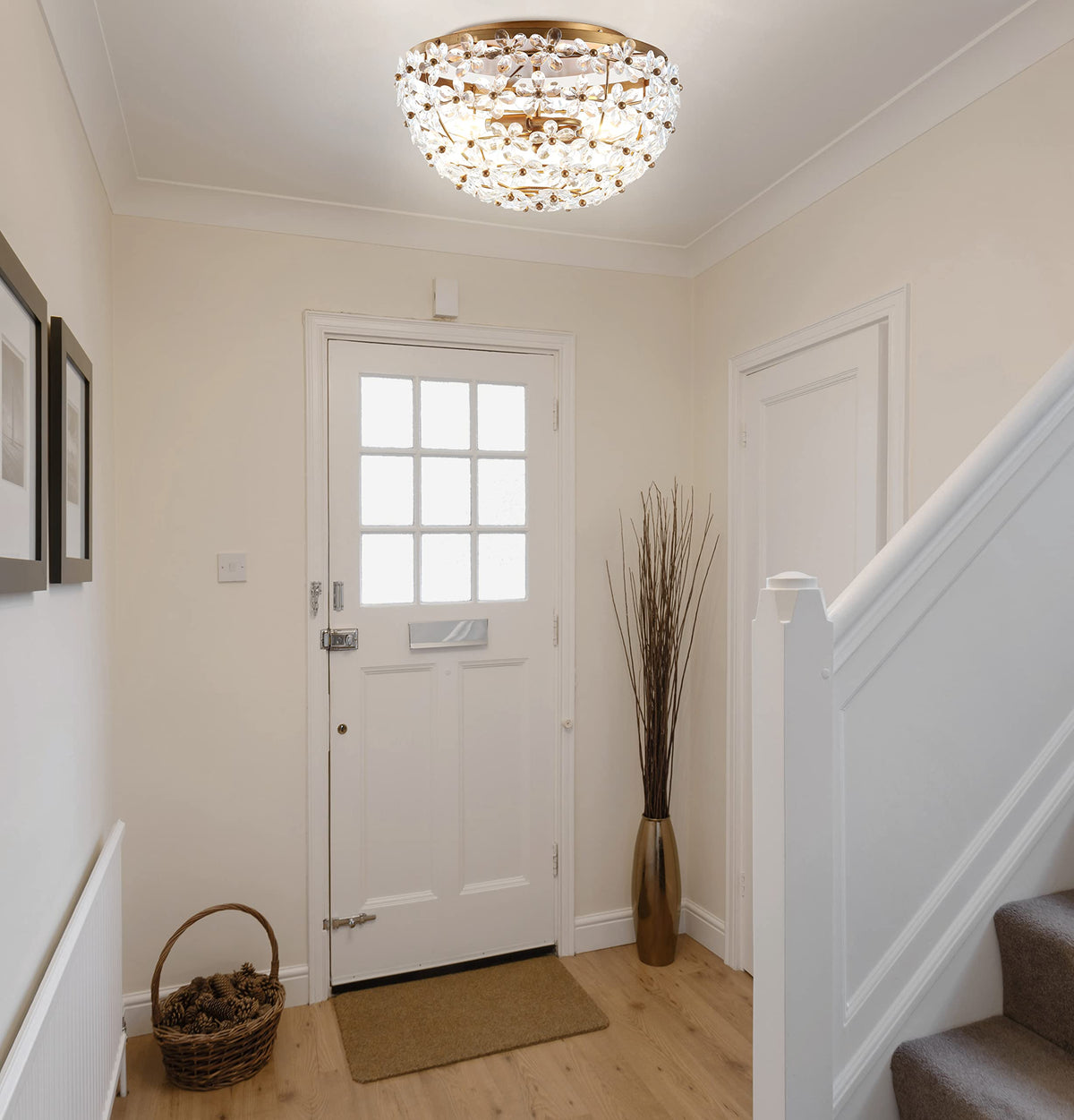 Q: What type of light bulbs are included with this flush mount?A: The flush mount comes with energy-saving LED bulbs included, ensuring efficient lighting while reducing energy consumption.