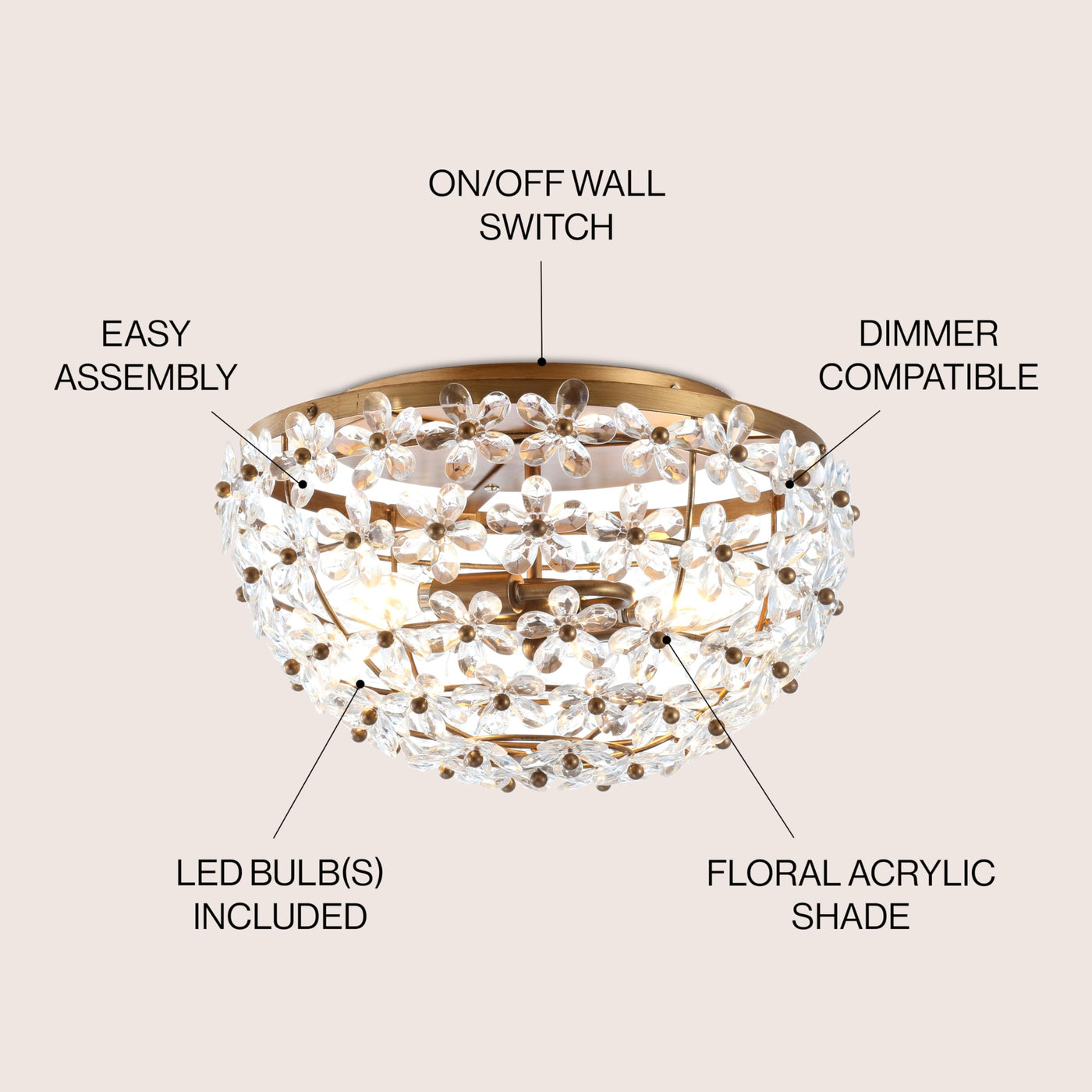 Q: What materials are used in the construction of this light fixture?A: The JONATHAN Y JYL9043A flush mount is constructed from metal and acrylic, ensuring durability and a modern aesthetic.