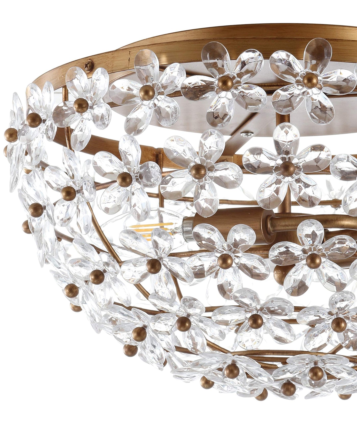 This stunning fixture features an arbor-inspired design that adds a refreshing touch to any decor. The shallow drop allows it to fit seamlessly in compact spaces, while the antique gold finish and crystal details elevate the overall aesthetic. Crafted from well-made metal, this ceiling light is both durable and visually appealing. It is designed to provide general lighting, making it an ideal choice for various settings within your home.