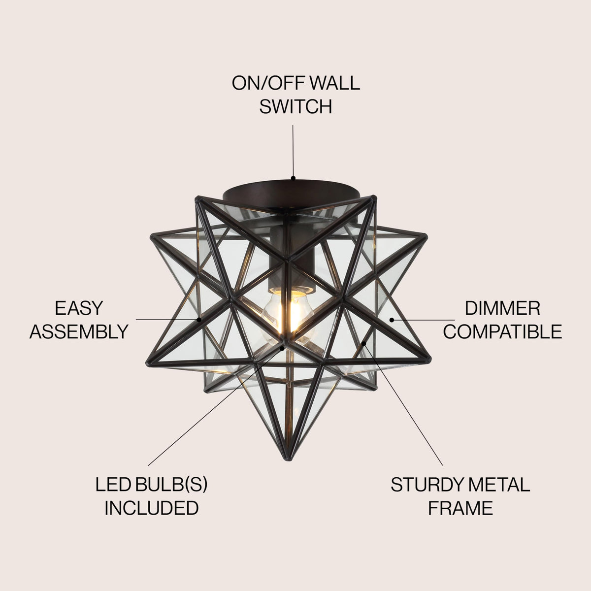 JONATHAN Y Stella 12in Moravian Star Flush Mount Light, Dimmable, Oil Rubbed Bronze/Mercury, Model JYL9035D