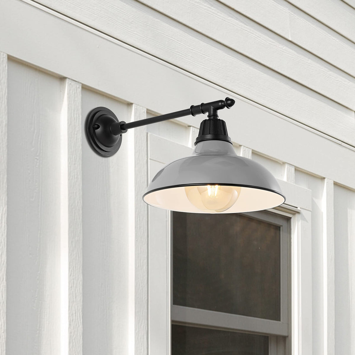 - **Versatile Design**: Featuring a black straight bracket and a wide metal shade in classic gray and white, this wall light complements various interior styles. It is suitable for both indoor and outdoor use in covered locations, making it an adaptable lighting solution.