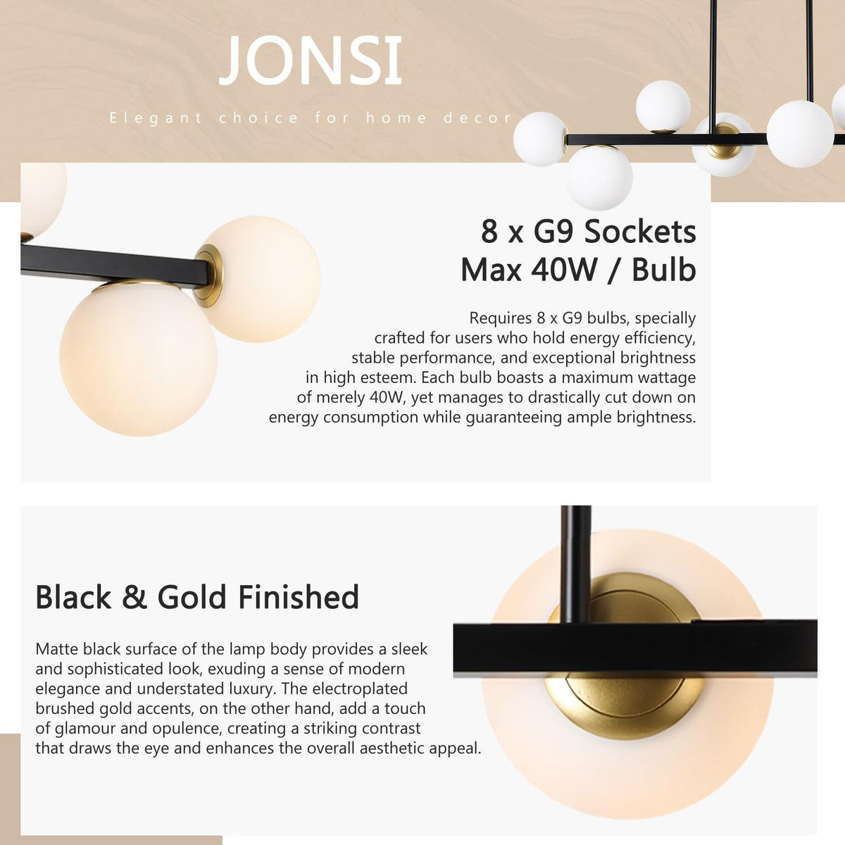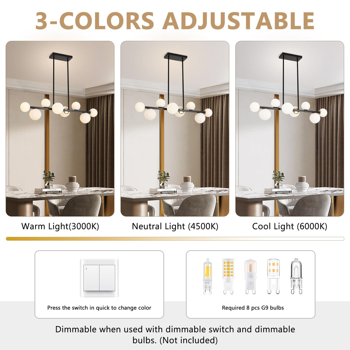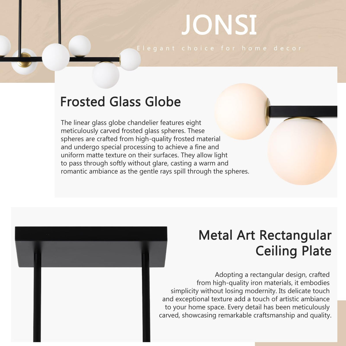 Jonsi Dining Room Light Fixture Over Table, Mid Century Chandeliers, Modern 8 Lights Globe Glass Linear Chandelier Adjustable Ce