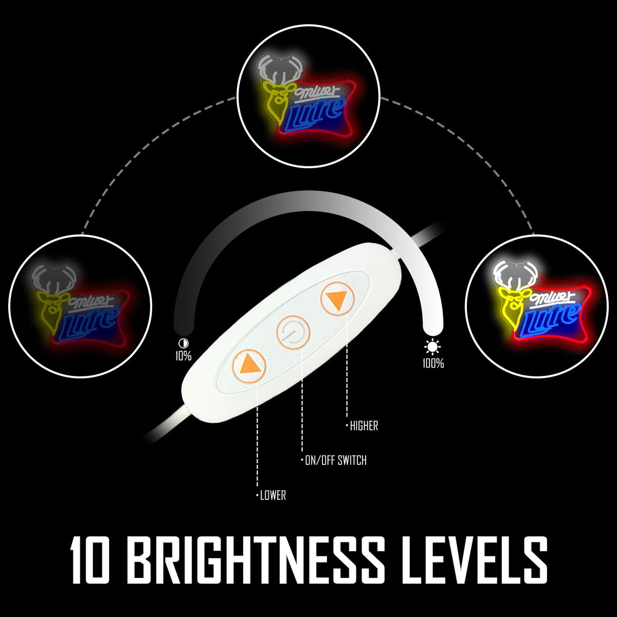 Q: How bright is the JooeTuu Beer Miller Lite Neon Sign?A: The JooeTuu Beer Miller Lite Neon Sign features adjustable brightness, allowing you to easily regulate the light intensity to suit your mood or occasion. Whether you want a soft glow for a relaxing evening or a bright display for a lively gathering, this neon sign can meet your needs.