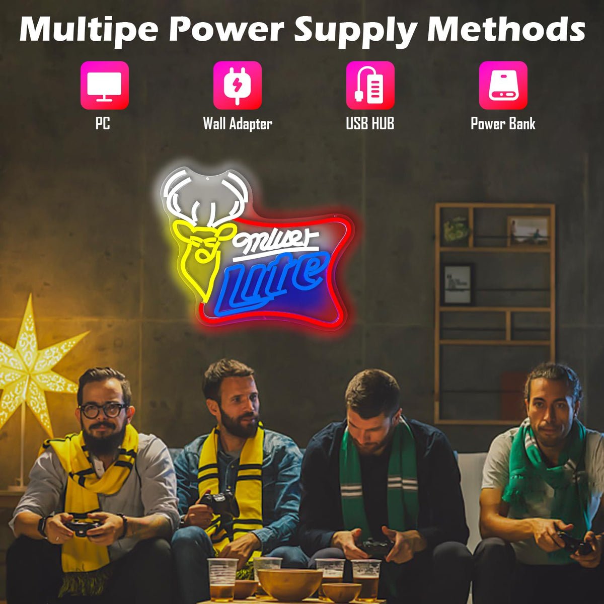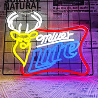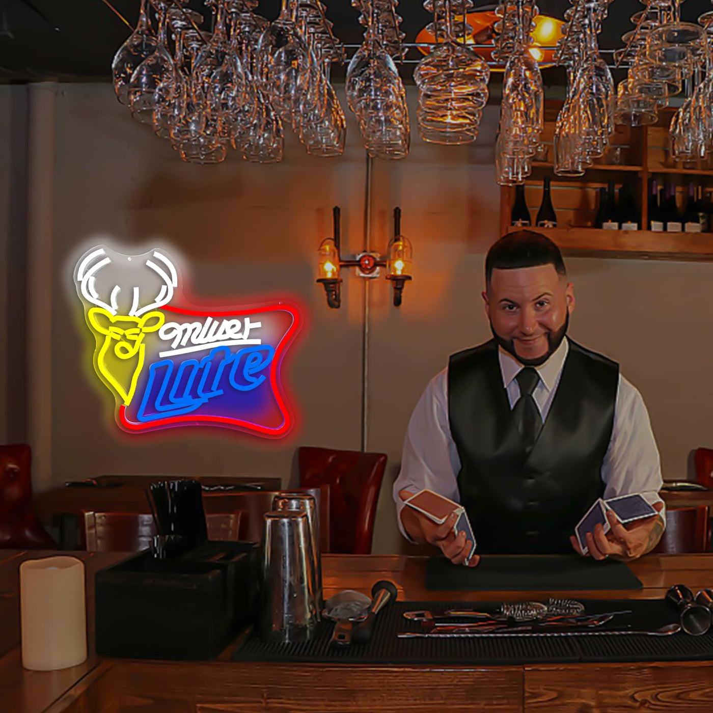 Light Up Your Space: Brighten your bar or home entertainment area with this miller lite neon sign. The bright font and iconic deer design infuse your space with unique charm.