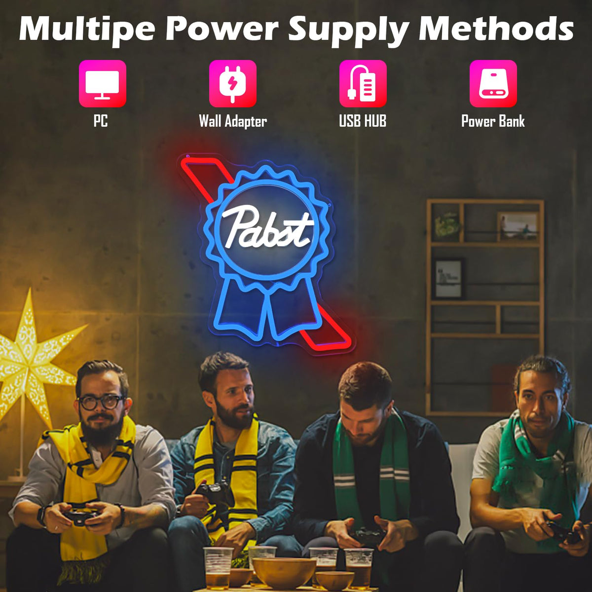 Q: What material is the neon sign made from?A: The JooeTuu Pabst Blue Ribbon Neon Sign is made from durable plastic, ensuring both longevity and safety for indoor use.