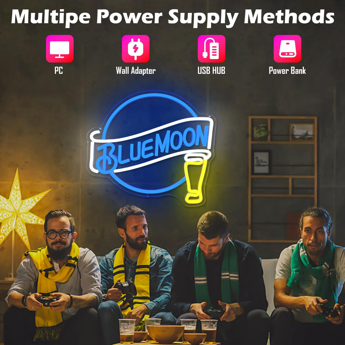 JooeTuu Blue Moon Beer Neon Signs Dimmable Bar Neon Beer Light Sign for Wall Decor Blue Moon Neon Sign for Man Cave Bedroom Shop Beer Club Pub Bistro