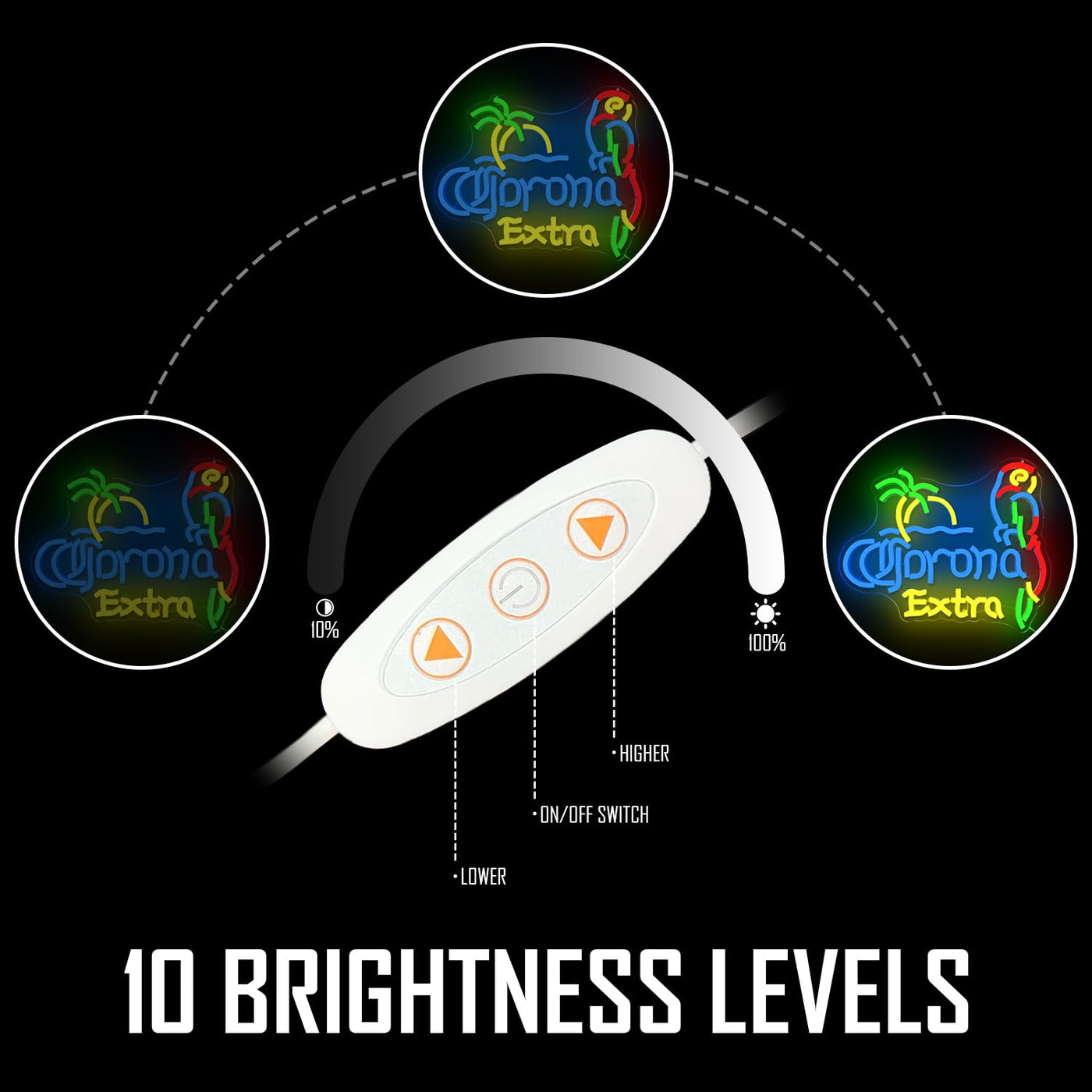 Q: Can the brightness of the neon sign be adjusted?A: Yes, the JooeTuu Parrot Beer Neon Sign features a brightness adjuster, allowing you to customize the light intensity to suit your mood and environment.