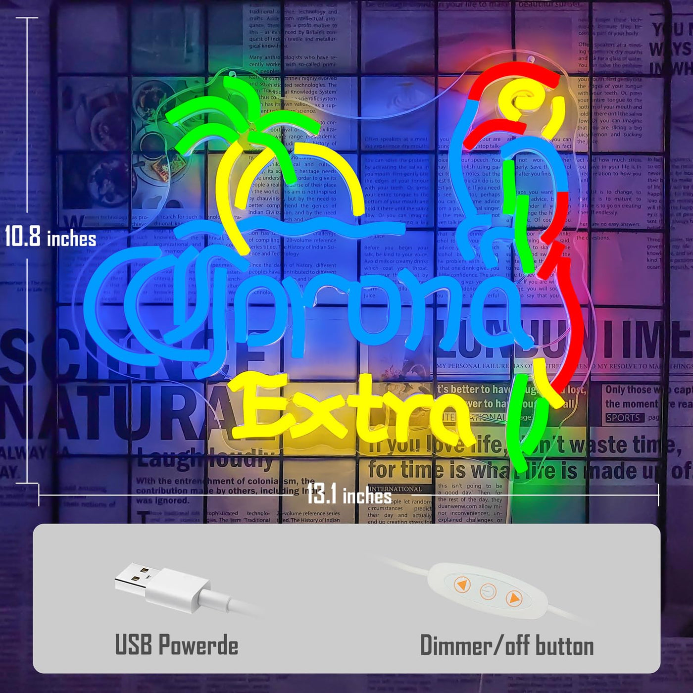 Jooetuu Parrot Beer Neon Sign Dimmable Beer Palm Tree Neon Light Signs For Wall Decor Sunrise Sunset Neon Beer Sign For Home Bar Man Cave Beer Club Pub Bistro