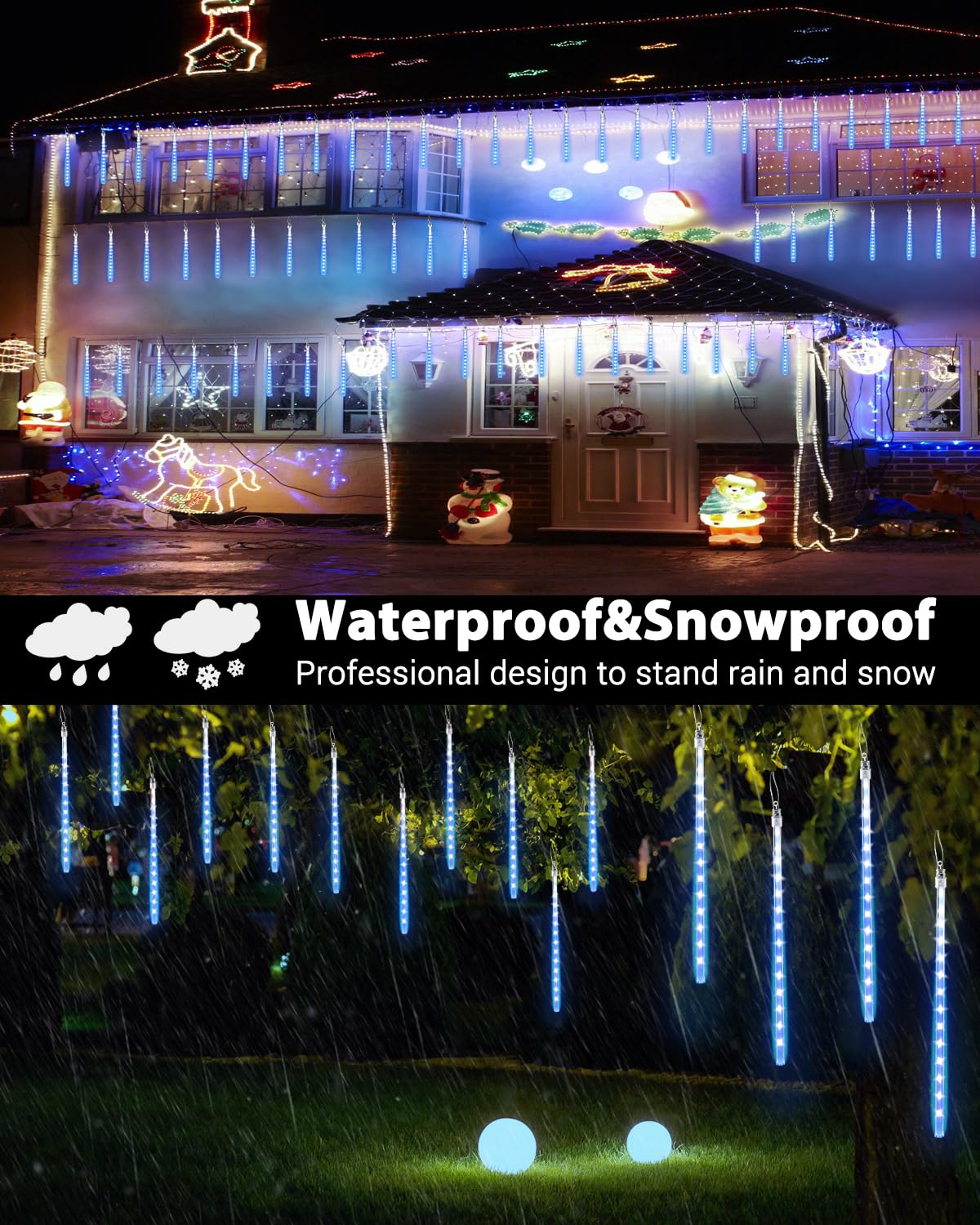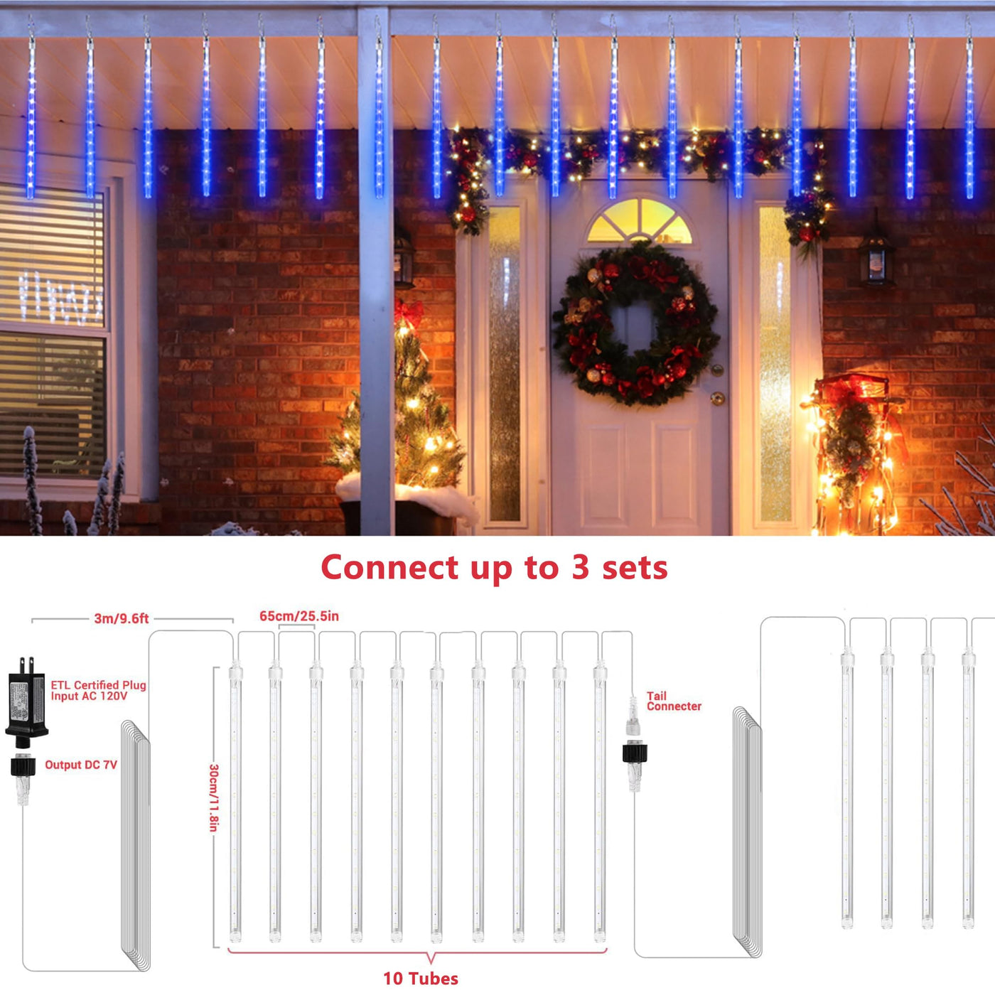 Joomer 2-Pack Christmas Lights Outdoor, 11.8 Inch 10 Tubes 240 Led Meteor Shower Lights, Led Falling Icicle Cascading Lights With Timer Waterproof And Connectable For Christmas Decoration (Blue)