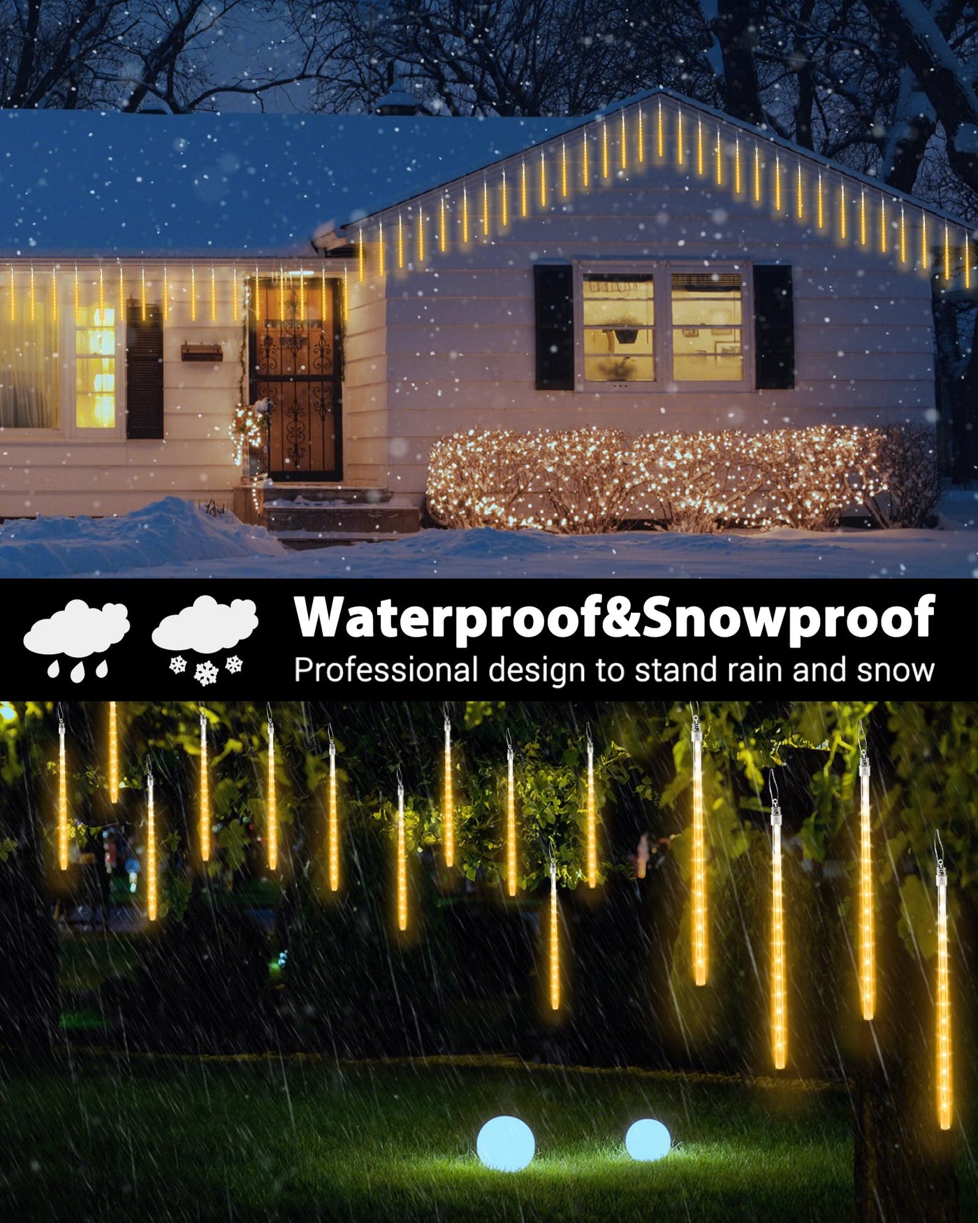 Package include: 1 x Meteor Shower Lights (10 Tubes with adaptor)