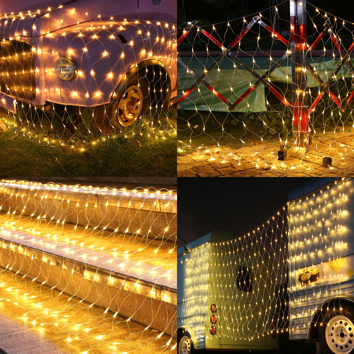 360 Led Connectable Christmas Net Lights, 8 Modes Mesh Net Lights Waterproof For Christmas , Festival, Wedding, Holiday, Party, Event Decorative Specifications: Led Quantity: 360 Led Wire Color: Clear Wire Light Color: Warm White Setting: Outdoor & Indoor Size: 12Ft X 5Ft Lead Wire: 5M/ 16.4Ft Input Voltage: 120V~60Hz Output: 30V Watts: 6W Package Included: 2 X 360 Led Net Mesh String Lights 2 X Us Adapter 1 X User Manual Notes ?This Product Should Not Be Left Unattended. The Power-Cord Of The Light-Set Cannot Be Replaced; Where Breakage Or Damage To The Cord Occurs, The Light-Set Must Not Be Used/Energized But Disposed Of Safely. ? Do Not Use This Light Close To Any Source Of Heat. ? This Product Is Not A Toy. Keep It Out Of Each Of Children. ? Do Not Hang Objects From An Electrical Cord Or Copper Wire. ? Keep The Power Adapter Away From Any Source Of Water