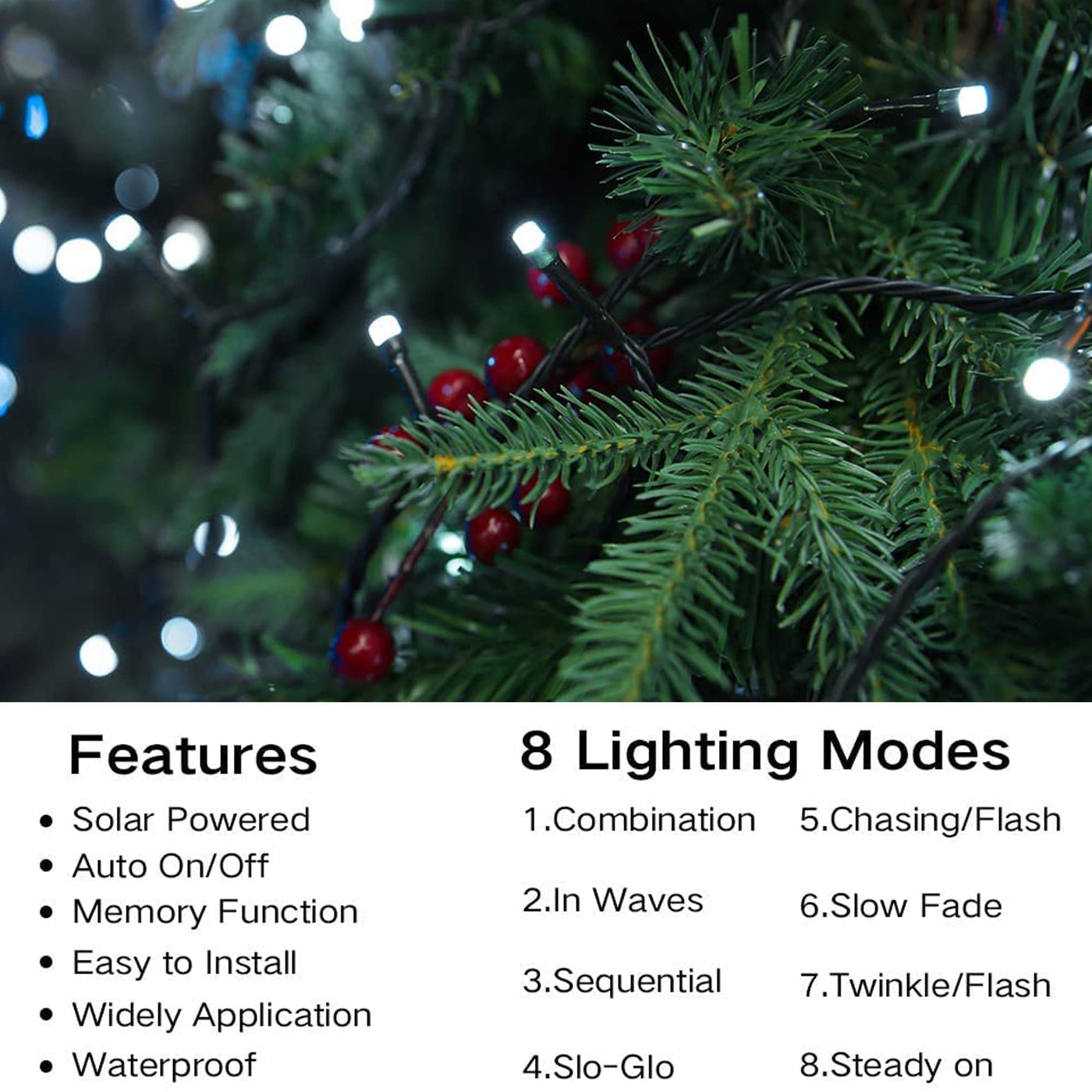 Crafted from durable plastic, these string lights feature 200 bright white LEDs on a 72-foot length, making them suitable for various decorations and setups. The solar panel charges during the day, utilizing solar energy to power the lights at night, eliminating the need for electricity or battery replacements. With an IP65 waterproof rating, they are built to withstand harsh weather conditions, ensuring year-round use without concerns of damage from rain or snow. The built-in light sensor automatically turns the lights on at dusk and off at dawn, providing hassle-free operation. Additionally, the memory function saves your preferred lighting mode, so you do not need to reset it every time.