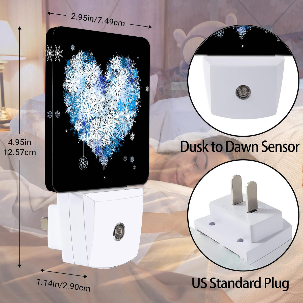 Jopowide Winter Art Hearts Dusk To Dawn Night Light, Auto Sensor Lamp Home Indoor Stairway Kitchen Corridor, Night Lights Plug I