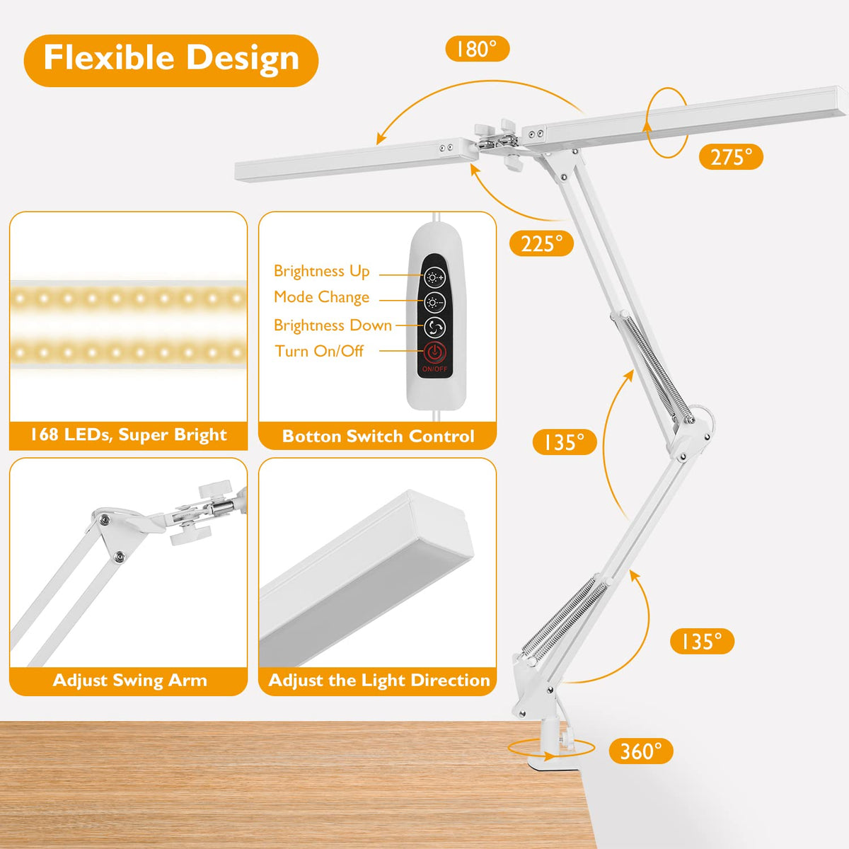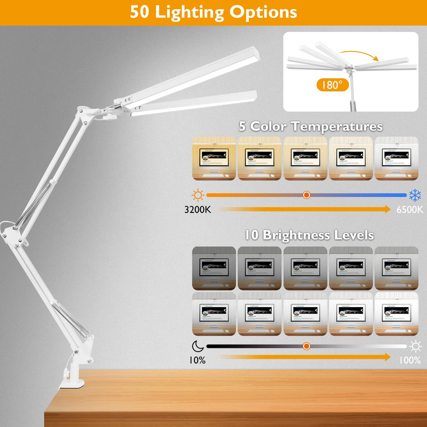 Jostic Led Desk Lamp With Clamp, Super Bright Double Head Desk Lamps For Home Office, 5 Color Modes, 10%~100% Dimmable Brightnes
