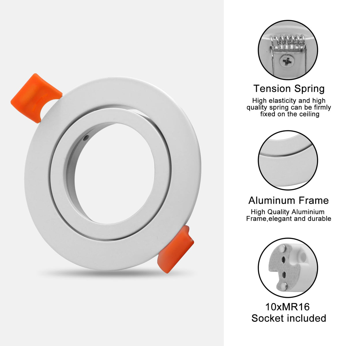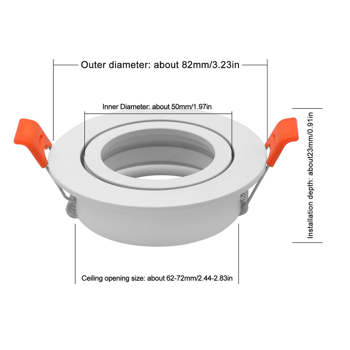 Joyinled Pack Of 10 Led Ceiling Light Frame Round Fixture Holders Adjustable Cutout 65Mm With Mr16 Sockets For 1.97In/50Mm Gu5.3